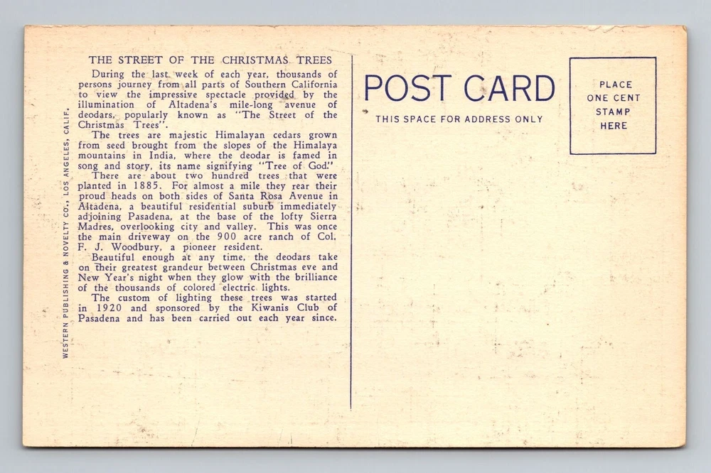Altadena CA-California, The Christmas Tree Street At Night, Vintage Postcard