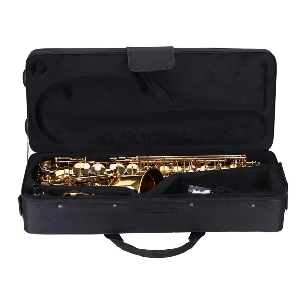 Whether you want to buy a E flat saxophone for yourself or for your friends or others, this saxophone is a good choice as a result of its high quality and cost effective price. Features: Eb alto saxophone with 802 key type, amazing great sound. Gold lacquered body, exquisite workmanship and rust-protection. Accurate sound hole positions enable player's fingers to rest comfortably. High grade leather pads to make you play the sax easily and smoothly. The engraved pattern makes the sax more special and delicate. Cleaning brush, cleaning cloth, gloves, strap and padded case are included to meet your needs better. Specifications: Color: Gold Material: Brass & Gold flat: E Item Weight: 2.5kg / 5.5lb Package Size: 63.4*28.8*15.6cm Package Weight: 4029g Note: We sent protective pads under keys to reduce friction during transport. The color of cleaning brush & cleaning cloth will be sent at random. Item color displayed in photos may be showing slight difference on your computer monitor due to the light or different monitors. Package List: I8648 1 * Sax Body 1 * Sax Neck 1 * Mouthpiece 1 * Mouthpiece Cap 1 * Cleaning Brush 1 * Cleaning Cloth 1 * Pair of Gloves 1 * Strap 1 * Padded Case