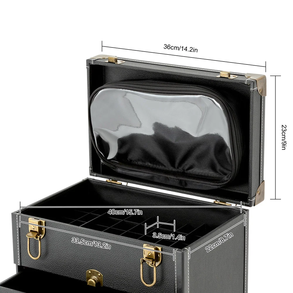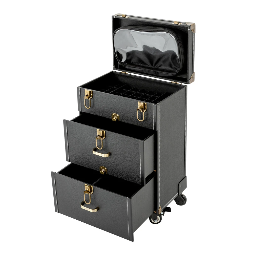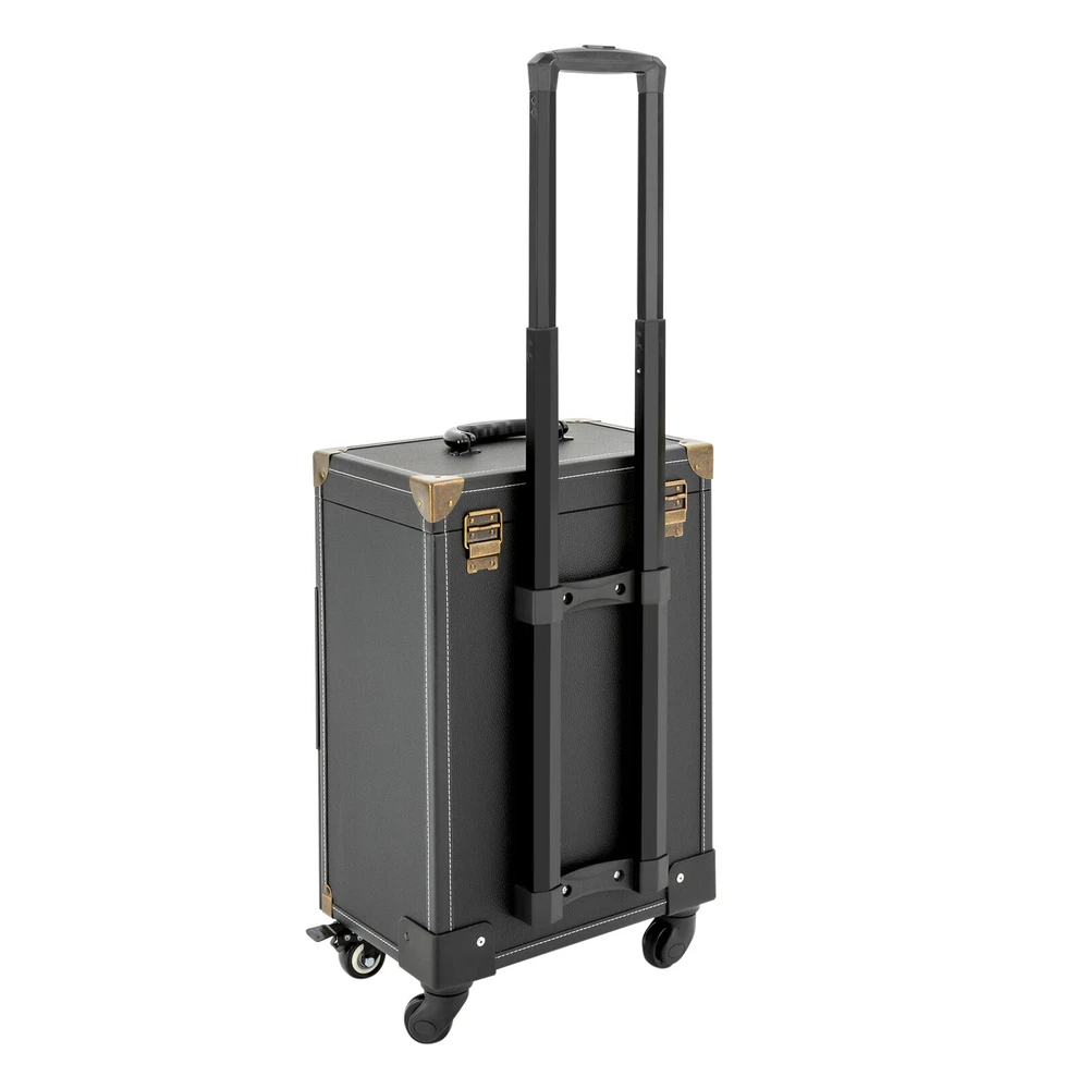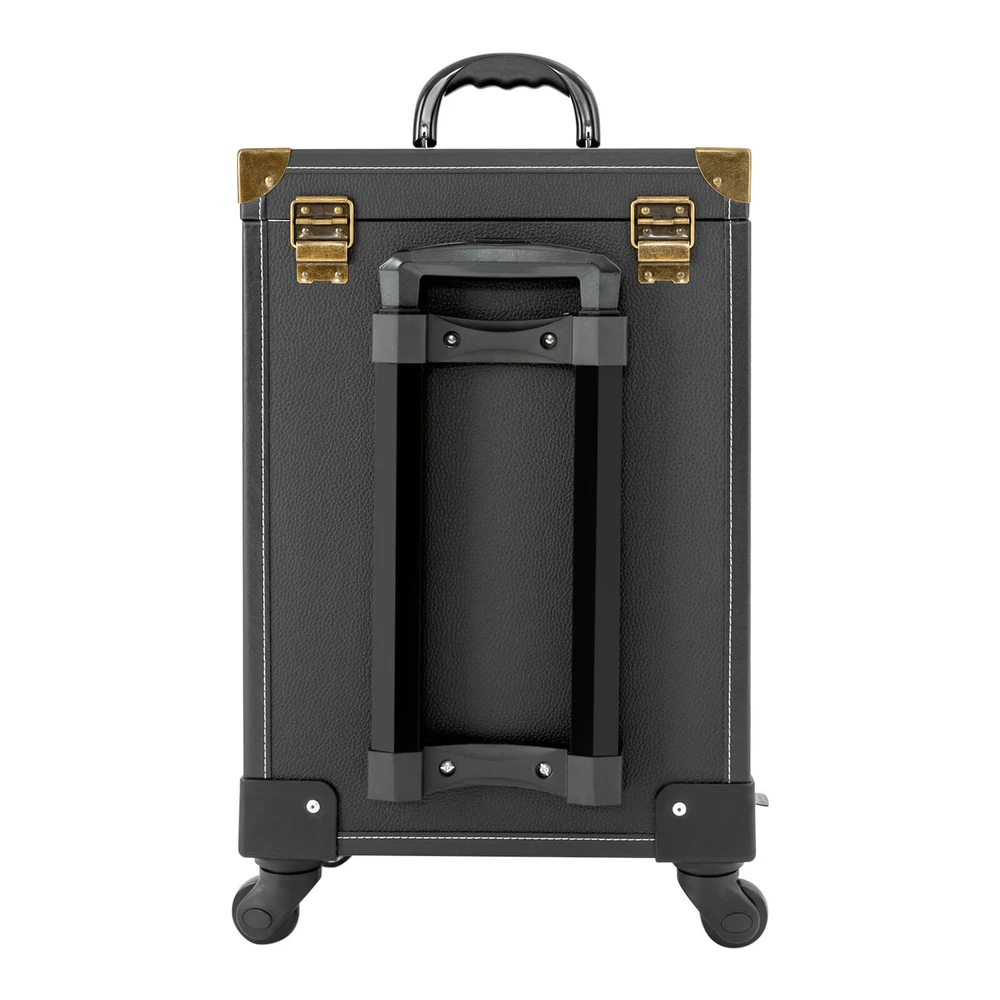 Aluminum Cosmetic Case Professional Trolley Makeup Train Case with Drawer Black Makeup Train Case, Rolling Makeup Trolley Case, Nail Polish Organizer, Jewelry Travel Cosmetic Train Case w/ 4 Wheels, Black Description If you are troubled by storing all your hairdressing tools in order and finding them easily, our makeup train case can be of great help to you. Featuring high durability, attractive appearance, large capacity, universal wheels, humanized handles, a telescopic rod, and more, this product is easy to carry outside while keeping practical and beautiful. It is an ideal choice for young manicurists, make-up artists, and hairdressers/cosmetics lovers to store various cosmetics. Key Features Beautiful Appearance: Elegant black color combined with a rectangular frame, smooth lines, and delicate lychee texture gives this product a stylish and beautiful look. High-quality bronze hardware and exquisite stitching also add to its appearance. Durable and Sturdy: This product is constructed with premium PU, PVC, and reinforced corners, aluminum alloy rod, zinc alloy-wrapped edge , which is waterproof, wear-resistant , and has a long service life. Categorized Storage : The 3-tier and compartment designs, cubicles, and a large clear pocket on the lid give this case a large capacity to hold your daily cosmetics and makeup tools in a categorized way, allowing you to quickly find what you want. And the dividers are removable for organizing different sized bottles. Easy to Move&Carry: 4 universal wheels (2 of which are lockable) ensure that the case can be moved smoothly and silently in all directions and allow for safe fixation to handle different road conditions. The telescopic handle and top handle give it high portability. Easy to Clean: The lid and drawer designs can prevent dust from entering, along with the waterproof surface, making it easy to clean. You just need to wipe off the dirt with a wet cloth. High Safety: The 4 latch locks and waterproof surface provide maximum protection and security for your toiletries, giving you peace of mind while traveling. Excellent Load-bearing Capacity: The sturdy construction and the zinc alloy frame provide the product with an excellent weight-bearing capacity of 88.2 lbs. You can place all kinds of hairdressing and beauty tools in it with confidence. Protective Packaging: To prevent the product from being damaged and bumped during transportation, we pack it with pearl cotton for maximum protection of your products. After-sales Service : We aim to provide quality products and services. If you have any problems, please feel free to contact us, and we will reply and solv e the problem for you as soon as possible. Details Back Buckles: The back of the luggage has two hardware eight-nail back buckles to make the case more stable and to ensure that it remains as good as new when repeatedly opened and closed. User-friendly Drawer Handle: The 2 comfortable drawer handles of the second and third tiers allow for convenient closing/opening of the drawers, thus ensuring easy access to the inside items. Application It is good for manicurists, makeup artists, both beginner and professional, freelance makeup artists, wedding makeup artists, celebrity makeup artist, and cosmetic trainees. Structure Overview The inside of the lid has a makeup bag where you can keep the things you use regularly for quick and easy access. The first tier can be used for nail varnish or other small items. The second tier is suitable for larger items such as hair dryers, curling wands, nail art machines, and more. The third tier has two compartments for medium items, such as cosmetics, hairspray spray. Specification Target Audience: Unisex Adult Caster Type: Swivel Mounting Type: Free Standing Material: PU, PVC, Zinc Alloy, Aluminum Alloy Color: Black Shape: Rectangular Number of Tiers: 3 Number of Wheels: 4 Max. Load-bearing Capacity: 40kg/88.2lbs Number of Keys: 2 Lid Size: 36*23cm/14.2*9inch Wheel Height: 7cm/2.8inch Telescopic Rod Length (Min.): 38cm/14.9inch Telescopic Rod Length (Max.): 86cm/33.8inch Second Tier Inside Size: 30*19.5*13.5cm/11.8*7.7*5.3inch Each Compartment of Top Tier Size(L*W): 3.5*3.5cm/1.4*1.4inch Each Compartment of Third Tier Size: 14.5*19*13.5cm/5.7*7.5*5.3inch Top Tier Height: 9cm/3.5inch Second&Third Tier Height: 17cm/6.7inch Overall Case Body Size: 36*23*49cm/14.2*9*19.3inch Overall Product Size: 36*23*101cm/14.2*9*39.76inch Package Size: 63*32*41cm/ 24.8*12.6*16.14inch Gross Weight: 10kg/22.04 lbs Product Weight: 9kg/19.84 lbs Package Included 1*Makeup Train Case 2*Keys Notes Please note that cosmetics or makeup tools are not included. This product is a carry case only. This product includes two keys. Please allow the slight color difference caused by the shooting light and 1-3 cm error due to manual measurement, and make sure you do not mind before ordering. Payment Delivery details Terms of sales About us Contact us Payment We accept ebay payment 。 Fees such as import duties, taxes are not included in the item price or shipping costs. These charges are the buyer's responsibility. Delivery details Shipping: 2-9 working days to: USA Terms of sales We maintain high standards of excellence and strive for hundred percent customer satisfaction. Feedback is very important to us. We hope that you contact us immediately before you give neutral or negative feedback, so that we can address your concerns. It is impossible to address issues if we do not know about them! About us Your satis faction is our ultimate goal. We work hard to earn your trust and future business. Our certified technicians have tested each item before shipping. The unit comes with 1 year limited warranty on all manufacturing defects. a) If you receive a defective item, you may return it or ask for a discount. Please contact us within 14 days after you receive the package. b) What you returned must be intact and in its original packaging as re? u. Customer is responsible for shipping costs of