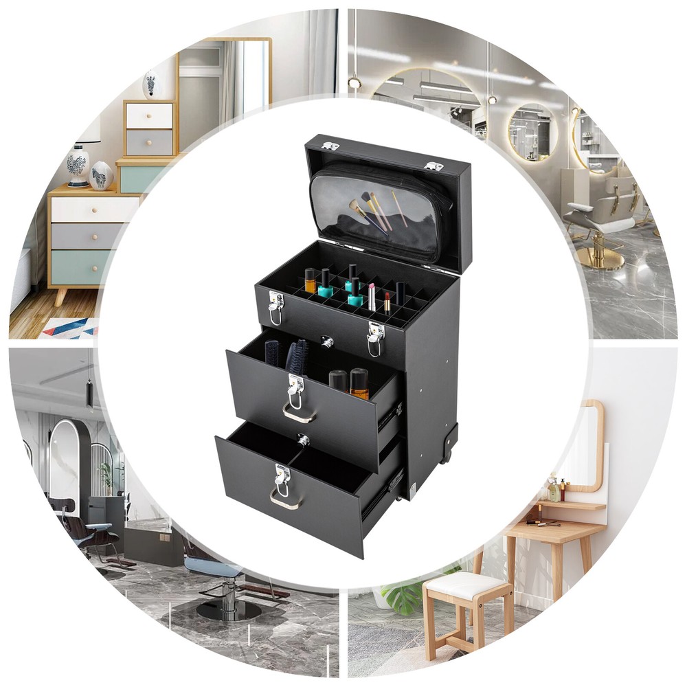 This rolling case is a total game-changer for my makeup and nail polish collection! The sturdy aluminum build glides smoothly on wheels, and the retractable handle makes airport travel a breeze. Love how organized everything stays with the multiple trays - no more digging through messy bags. Perfect for pros or anyone who needs their beauty essentials securely in one place!