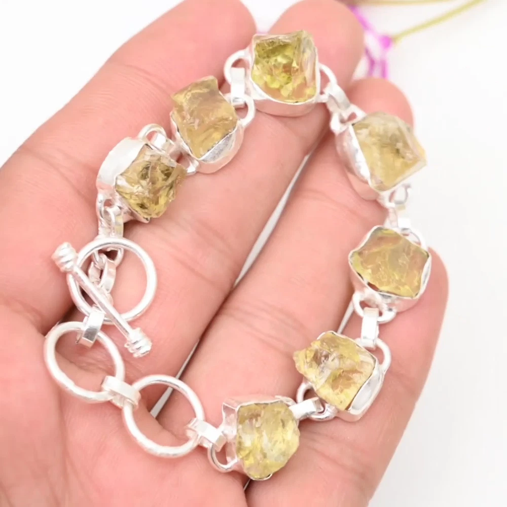 Colored Diamond Intensity:N/AMain Stone Depth:N/ACountry of Origin:IndiaNumber of Diamonds:N/ATotal Carat Weight:10 carat and aboveSetting Style:BezelOccasion:Anniversary, Birthday, Christmas, Engagement, Mother's Day, Valentine's Day, WeddingBrand:HandmadeColor:SilverTheme:Beauty, Bohemian, Ethnic, Halloween, LoveType:BraceletMain Stone Shape:Same As PictureShape:Same As PictureClosure:ToggleCertification:N/AStyle:ChainDiamond Color Grade:N/ASecondary Stone:Raw CitrineMain Stone:Raw CitrineCountry/Region of Manufacture:IndiaMetal Purity:925Main Stone Treatment:Not EnhancedMain Stone Width:N/AMain Stone Length:N/ACharm Type:Same As PictureItem Length:8 inches with Adjustable ChainChain Type:N/ADiamond Clarity Grade:N/AMain Stone Color:YellowFeatures:AdjustableMetal:Sterling SilverCut Grade:ExcellentMaterial:GemstoneNumber of Gemstones:7Main Stone Creation:NaturalCollection:HandmadeBase Metal:Sterling Silver