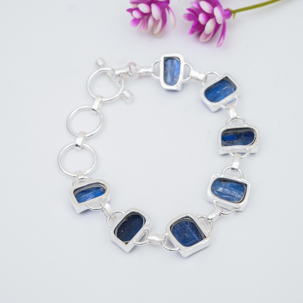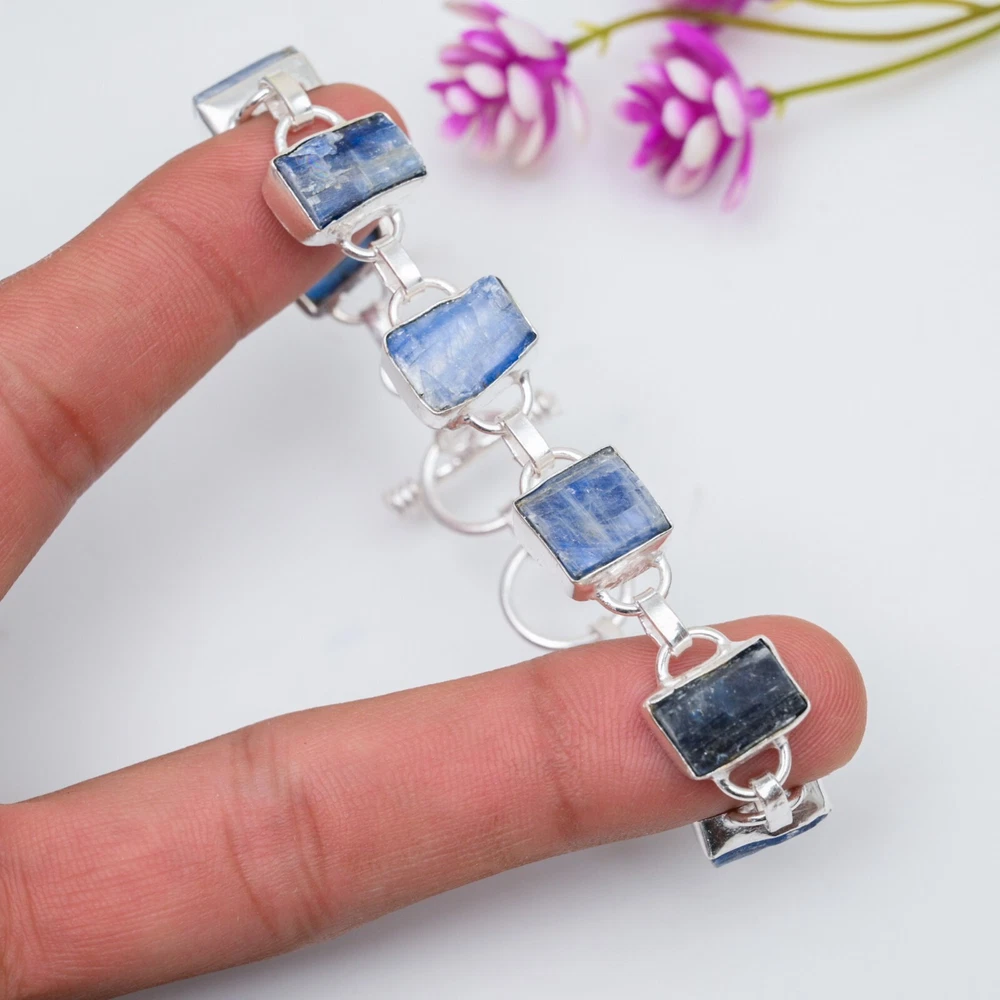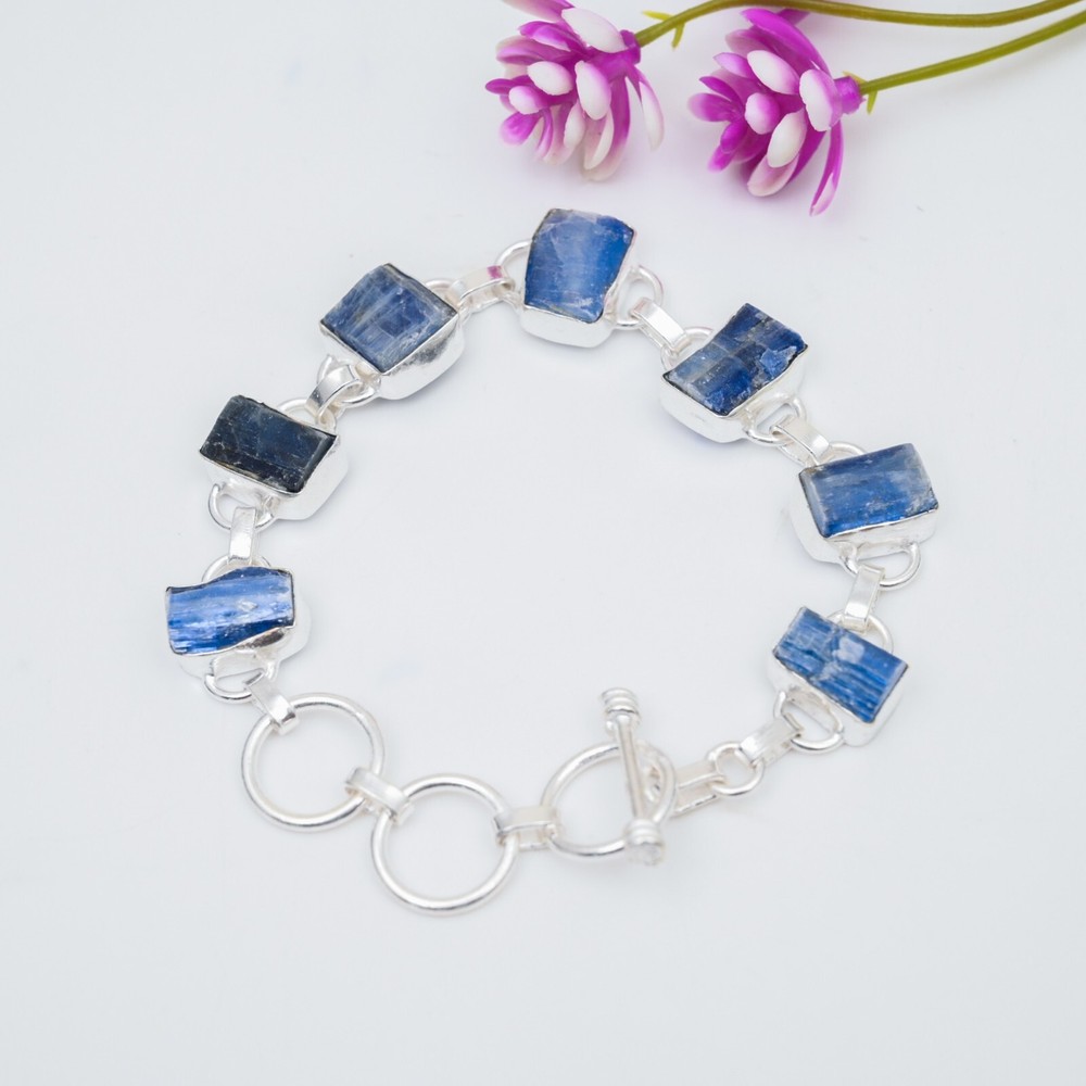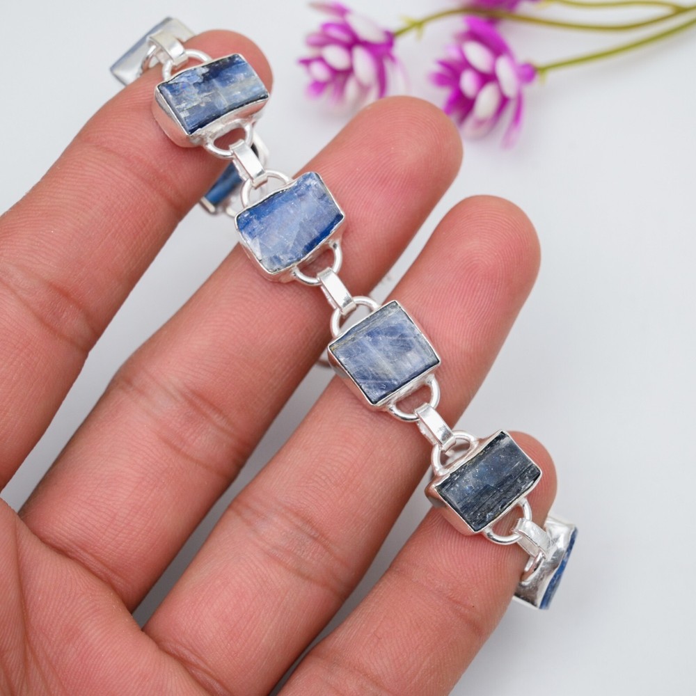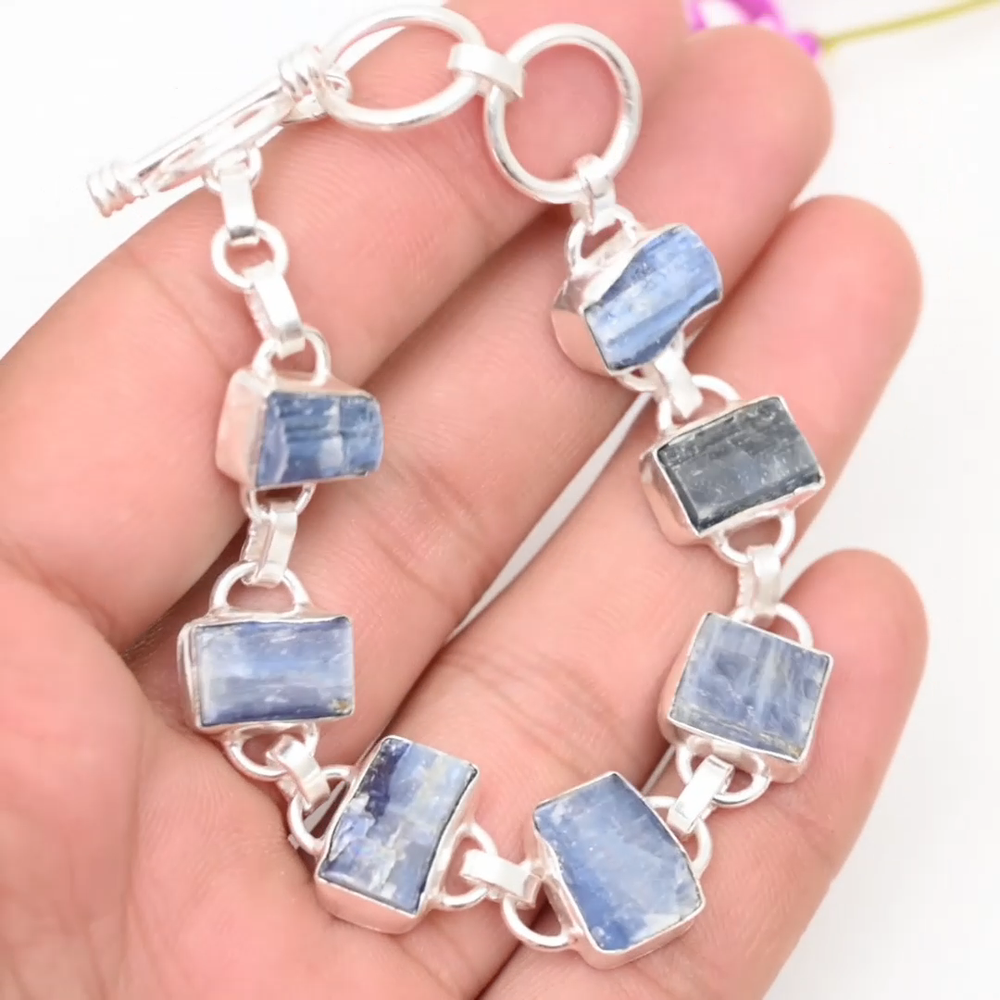 Colored Diamond Intensity:N/AMain Stone Width:N/AMain Stone:Raw KyaniteOccasion:Anniversary, Birthday, Christmas, Engagement, Mother's Day, Valentine's Day, WeddingCollection:HandmadeStyle:ChainCountry of Origin:IndiaMetal:Sterling SilverMain Stone Color:BlueBrand:HandmadeSetting Style:BezelColor:SilverCut Grade:ExcellentType:BraceletDiamond Color Grade:N/AFeatures:AdjustableMetal Purity:925Main Stone Depth:N/AMain Stone Creation:NaturalChain Type:N/ADiamond Clarity Grade:N/ATotal Carat Weight:10 carat and aboveCertification:N/AShape:Same As PictureClosure:ToggleTheme:Beauty, Bohemian, Ethnic, Halloween, LoveBase Metal:Sterling SilverMaterials sourced from:IndiaCharm Type:Same As PictureMain Stone Treatment:Not EnhancedMain Stone Length:N/AMain Stone Shape:Same As PictureNumber of Diamonds:N/ANumber of Gemstones:7Material:GemstoneSecondary Stone:Raw KyaniteItem Length:8 inches with Adjustable Chain