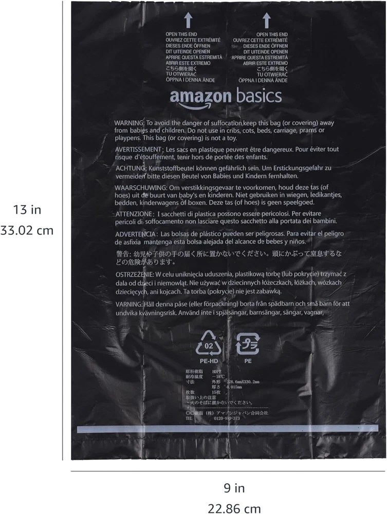 Product Details Unit Count: 300 Count Recommended Uses For Product: Animal Waste Material Feature: Disposable Color: Black Material: Plastic Item Form: Bag Scent: Unscented Number of Items: 20 Item Weight: 1.6 ounces Item dimensions L x W x H: 13 x 9 inches Country of Origin: China Item model number: 100320 Item Package Dimensions L x W x H: 9.17 x 7.83 x 2.13 inches Item Dimensions LxWxH: 13 x 9 inches Target Audience Keyword: dogs Model Name: bag Size: 15 Count (Pack of 20) Style: Standard Item model number : 100320 Country of Origin : China Dog poop bags for quick, easy pick-ups Neatly contains waste and minimizes odors Leakproof design keeps hands clean and protected Includes 300 unscented plastic bags (15 bags per roll; 20 rolls), a dispenser, and a matching leash clip Large 13 x 9-inch bag size for generous coverage Carabiner for clipping the dispenser onto a leash (leash not included) Plastic dispenser makes it easy to remove a bag from the roll during walks Product Description Seller Basics Unscented Standard Dog Poop Bags with Dispenser and Leash Clip, 13 x 9 Inches, Black - 20 Rolls (300 Bags) From the Manufacturer Seller Basics