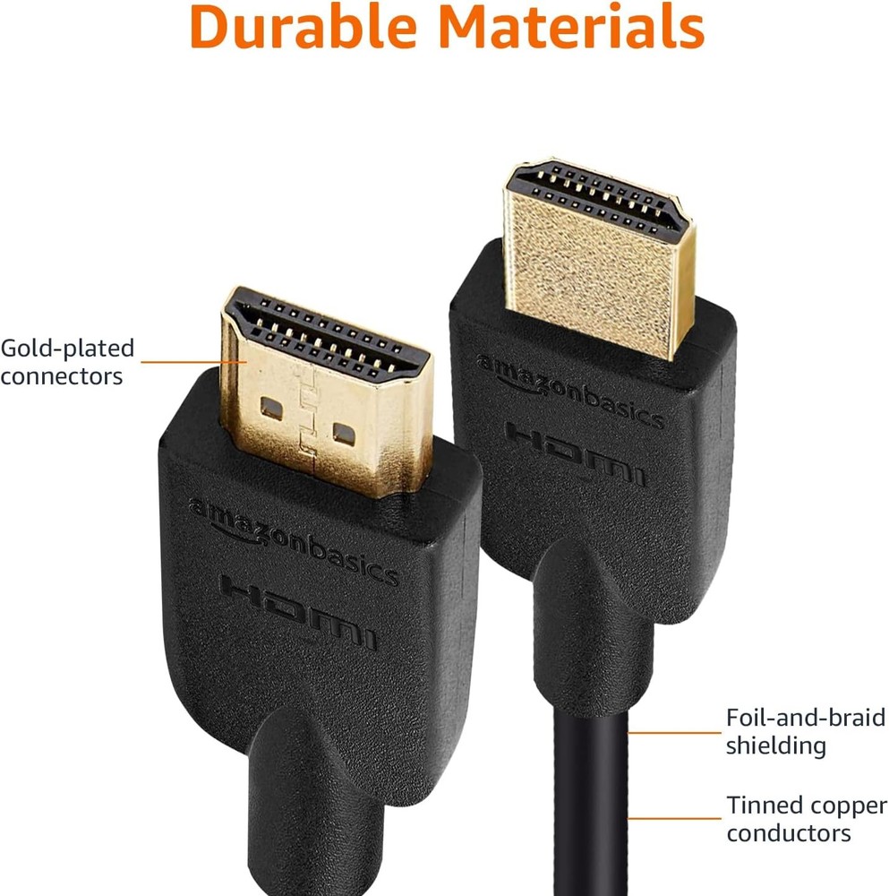 IN THE BOX: HDMI cable (A Male to A Male) for connecting 2 HDMI-enabled devices; 6 feet long in Black (3-pack) DEVICE COMPATIBLE: Connects Blu-ray players, Fire TV, Apple TV, PS4, PS3, Xbox One, Xbox 360, and computers to TVs, displays, A/V receivers, and more SUPPORTS 4K VIDEO: Supports 4K video at 60 Hz, 2160p, 48-bit/px color depth, as well as bandwidth up to 18Gbps, Ethernet, 3D, and Audio Return Channel (ARC) EASY CONNECTION: Share an Internet connection among multiple devices (no need for a separate Ethernet cable) BACKWARDS COMPATIBLE: Works with earlier versions to allow for use with a wide range of HDMI-enabled devices NOTE: This cable supports up to 4K@60Hz, so if a connected device's output is higher than that standard, the cable won't work properly Special Feature High Speed Compatible Devices PlayStation, Television, Personal Computer, Xbox Cable Type HDMI Connector Type HDMI Brand Amazon Basics 7005176