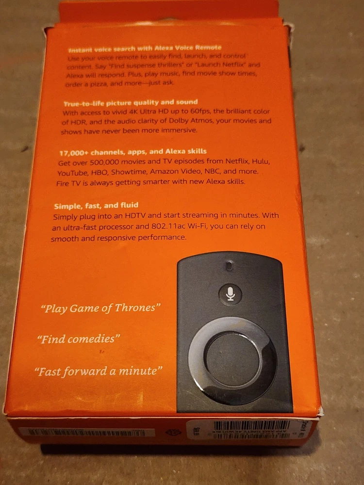 AMAZON FIRE TV WITH 4K AND ALEXA VOICE REMOTE 4K ULTRA HD AND HDR QUAD CORE DOLBY DIGITAL HIGH DYNAMIC RANGE BRAND NEW, IN OPEN BOX PICTURES SHOW THE ACTUAL DEVICE FOR SALE. All my used items are double tested and inspected before shipped. I Always make sure item are ship as described. Please always review all pictures for more details. I don't use stuck photos; I always Take a pictures of the exact item/product I'm listing for sale. Sorry I dont cancel order after the payment is completed. Thank you for your understanding. Returns Please note that returns are to be handled directly according to the selected return policy. Any new, Factory sealed, unopened or items altered in any way (opened) are not eligible for return, Thank you. If you don't agree with this policy, please don't buy it. All returns are subjected to a 25% restocking fee, where applicable. The Fee Will Be Waived if the item is not as described or damage in transit. All serial numbers recorded. If an item is returned to me due to the BUYER putting an incorrect address on the order, Buyer will be refunded their purchase price LESS the cost i paid for shipping. No Exceptions. Buyer agrees to the policies listed above. If you cannot agree to these policies, please do not purchase. Shipping Yes, i offer combined shipping. Please note that items are shipped Monday-Friday. All items will be shipped the most cost-efficient way via USPS, FedEx or UPS. Please not that i only offer free shipping to 48 continental states. Shipping address cannot be altered after purchase as per eBay policy. All International items will be shipped using the Global shipping program only. Please contact me before completing purchase if you have any special requests or concerns, I be willing to complete the necessary accommodations within the best of my abilities.