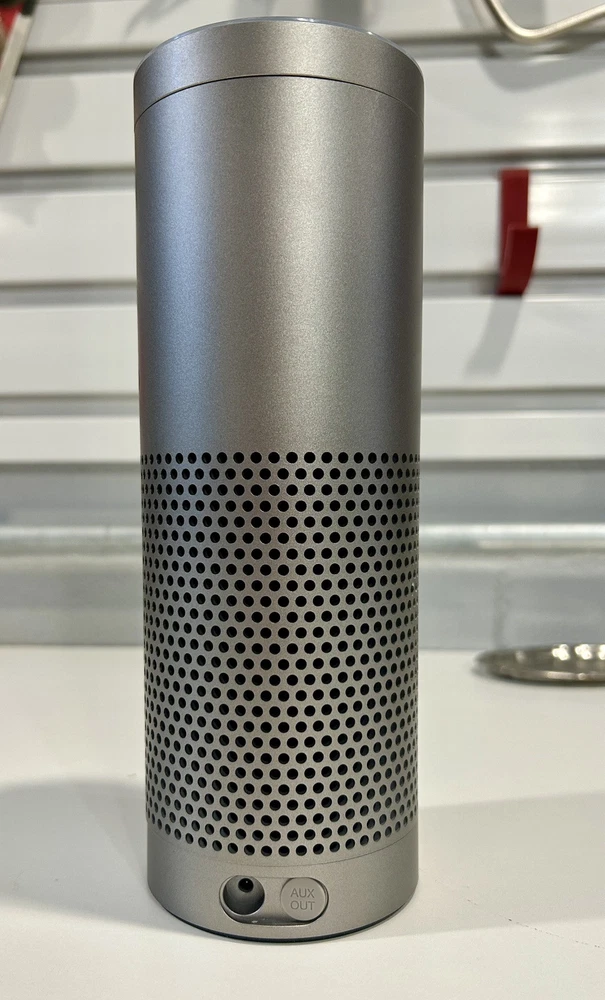 Works great! Elevate your home audio experience with the Amazon Alexa Speaker, Model ZE39KL. This sophisticated cube-shaped device, finished in a sleek silver color, seamlessly integrates with your Alexa-enabled smart home. The speaker system boasts a powerful 20W RMS output, ensuring crisp, clear sound for all your audio needs.Enjoy the convenience of Bluetooth connectivity and USB audio inputs, allowing for effortless streaming from your devices. Whether you're playing music, managing smart devices, or simply catching up on the news, this voice-activated speaker is designed to make your daily routine more efficient and enjoyable.