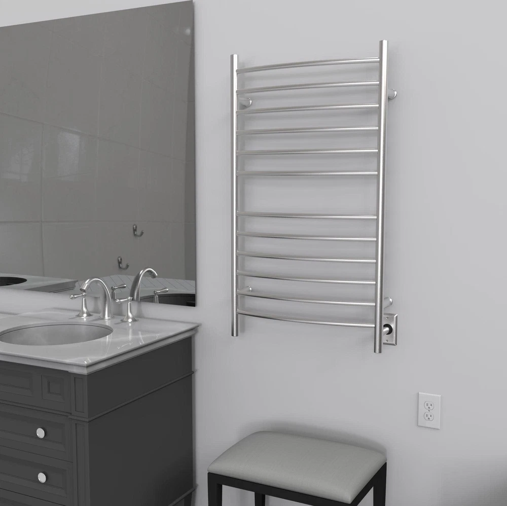 This towel warmer is a game-changer! The sleek stainless steel design looks amazing in my bathroom, and the dual plug-in/hardwire option makes installation a breeze. It heats up quickly, keeping towels cozy, and the polished finish adds a luxurious touch. The 12 bars provide plenty of space, and the upgraded switch is super convenient. Perfect blend of style and function—totally worth it!