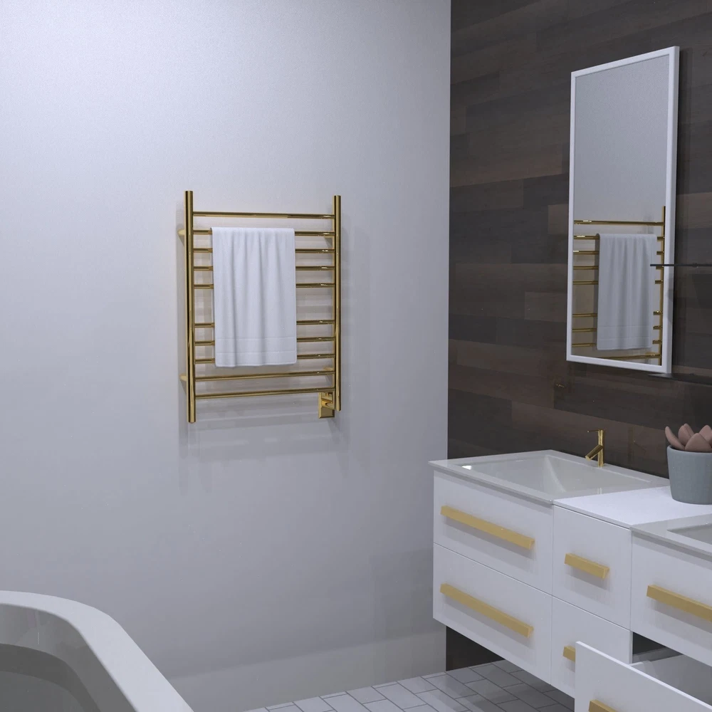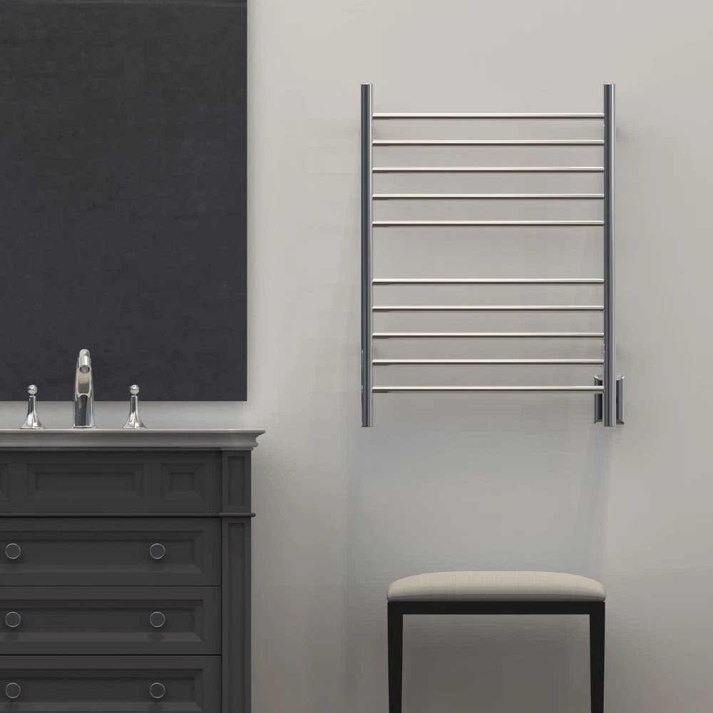 This towel warmer is a game-changer! The sleek stainless steel design looks elegant and modern, while the sturdy construction ensures long-lasting durability. It heats up quickly, keeping towels warm and cozy—perfect for chilly mornings. The concealed screws add a clean, seamless look, and it blends beautifully with other Radiant line products. Installation was straightforward, and the 2-year warranty gives peace of mind. Highly recommend for anyone wanting a touch of luxury in their bathroom!