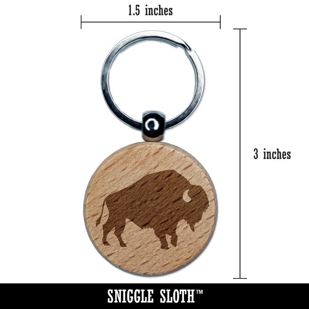 American Bison Buffalo Silhouette Wood Engraved Keychain Charm