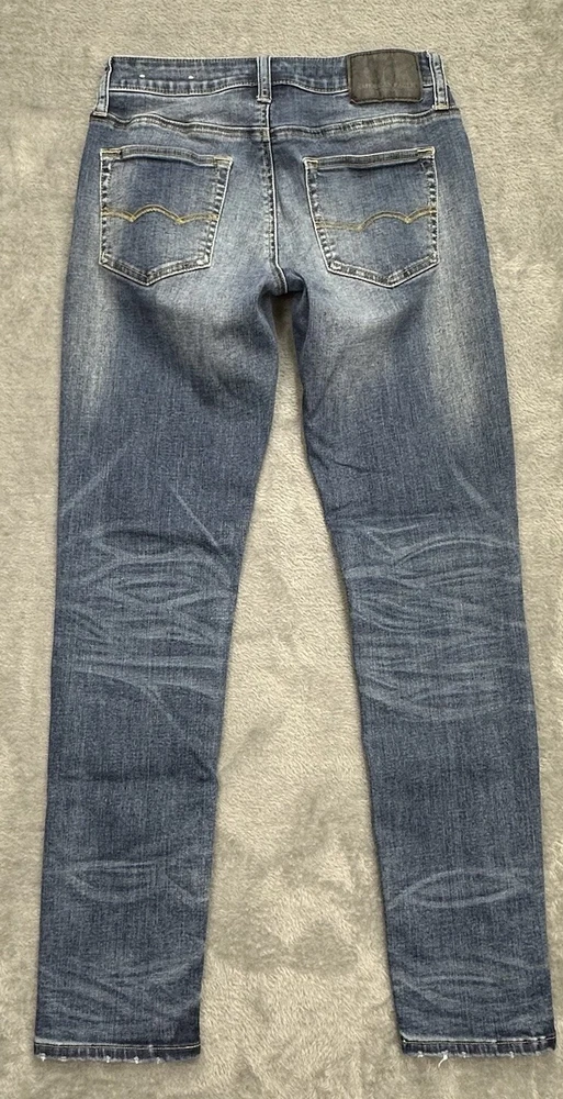 American Eagle Jeans Mens 28x30 (Fit 28x29) Blue Denim Extreme Flex Skinny Some seam and hem wear but otherwise in good pre-owned condition and laundered. Please see measurements in photos. I ship next business day, but sometimes same business day and Saturday if order is paid for early enough. Please let me know if you have any questions. I am open to offers!! Feel free to look at other items in my store! Thanks!