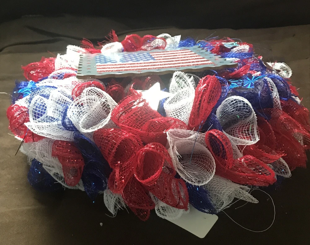 Patriotic Wreath For Front Door American Flag Independence Day Mesh Tulle Small Red, white, blue In excellent condition Thanks for your business Have a great day!