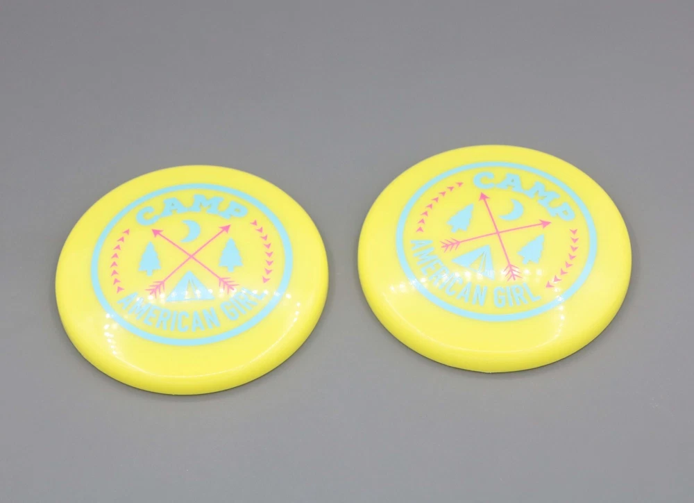 Shipping discount: Free shipping for orders over US $25.00,visit our store to add others items. Item Descriptions: 2pcs yellow flying disc Size: scaled for 18'' doll After sales: Any questions(such as broken、lost……) before you leave feedback please feel feel to contact us,we will do our best to solve it.