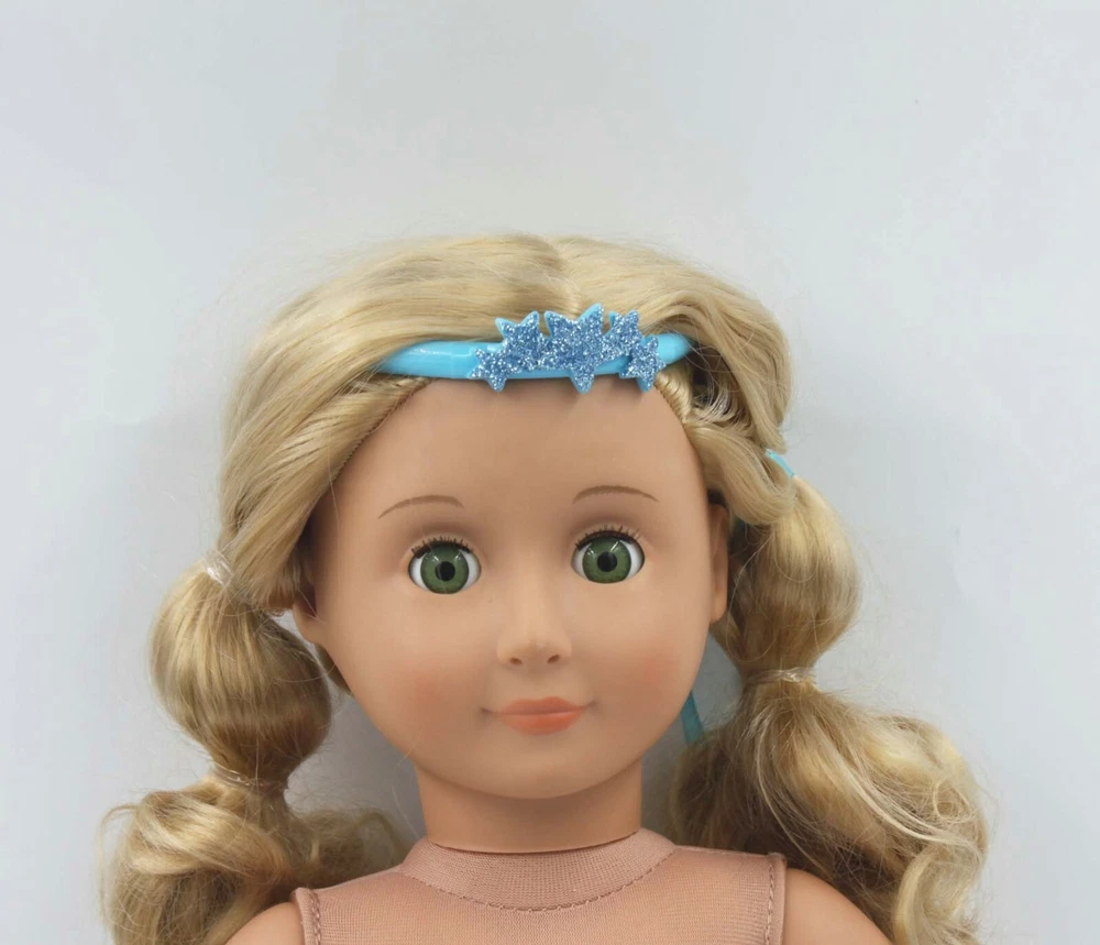 Shipping discount: Free shipping for orders over US $25.00,visit our store to add others items. Item Descriptions: A blue headband with a cluster of glittery stars Brand: American girl Size: scaled for 14'' doll After sales: Any questions(such as broken、lost……) before you leave feedback please feel feel to contact us,we will do our best to solve it.