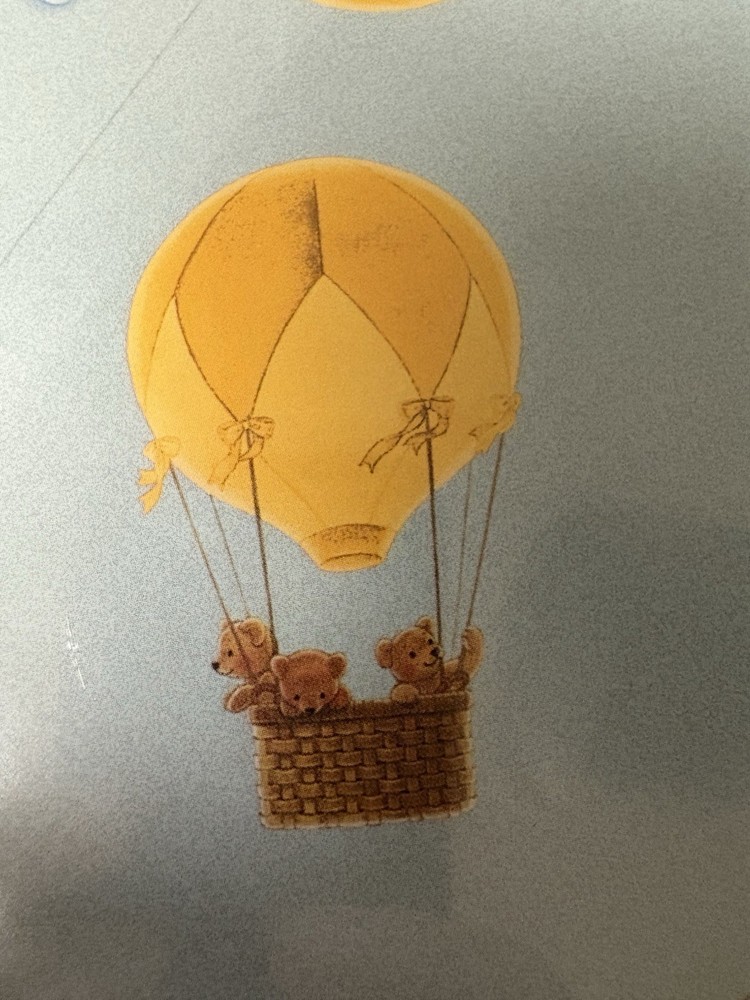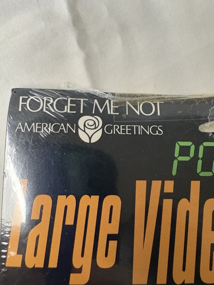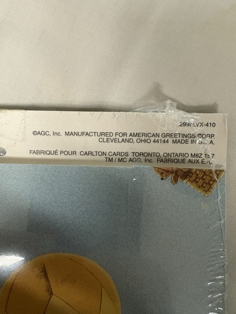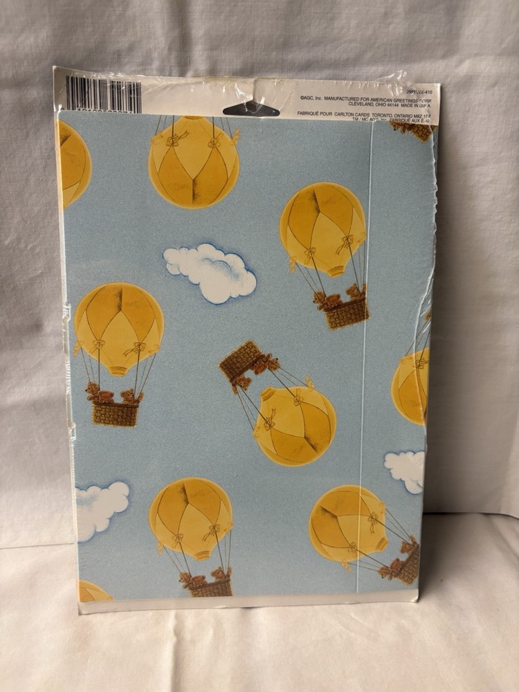 Sealed in Package Vintage 1980s American Greetings Pop Up Large Video Tape Box. A combined greeting card and gift box for a vhs tape. Artifact of the VCR era. Cute illustrated pattern of bears riding in a yellow hot air balloon, blue sky with clouds. So cute! Interesting vintage product, reminder of a lost world