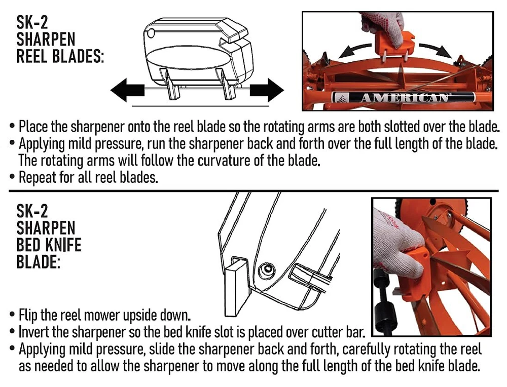 American Lawn Mower SK-2 Reel Mower Sharpener keeps your push mower blades in the best shape. This saves you time and effort when mowing your lawn because the sharp blades can easily trim grasses and weeds in go. Maintaining your lawnmower blades doesn't have to be difficult. You can do it at home easily and safely with this lawn mower sharpening kit. It contains a detailed manual, so you can never go wrong when sharpening your lawnmower blades. with all American Lawn Mower, Great States, Earthwise, and Scotts reel mowers Hand reel lawn mower sharpener keeps your blades in optimal cutting condition Safe and easy to use at home Specially designed for reel lawn mowers Carefully packaged in fitted box with detail manual for use