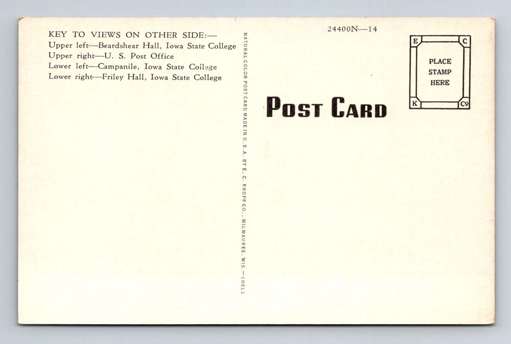 Era: Vintage Unit of Sale: Single Unit City: Ames Region: Iowa Country: USA Original/Licensed Reprint: Original Type: Printed (Lithograph) Theme: Cities & Towns Postage Condition: See Image Country/Region of Manufacture: Unknown Subject: Cities & Towns