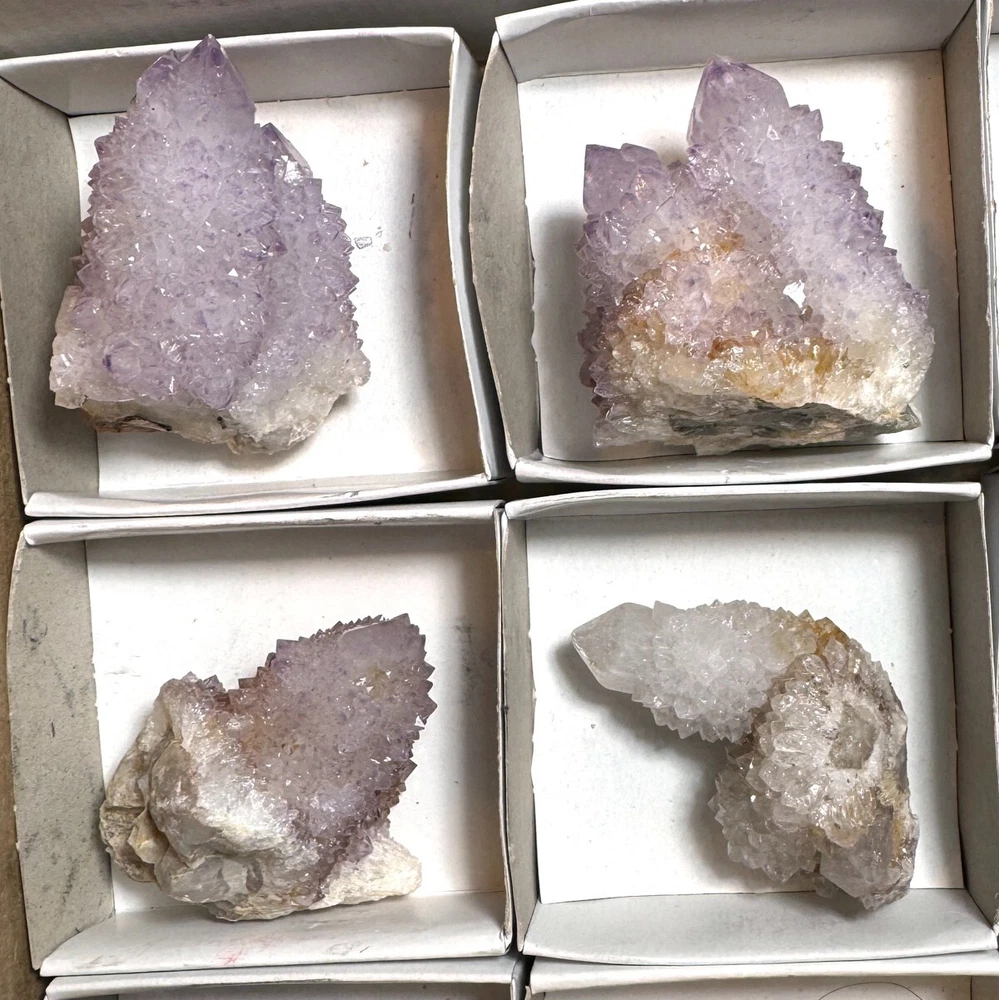 Amethyst Spirit Quartz Cactus Crystal Set of 12 Natural TRFlat68 Stones