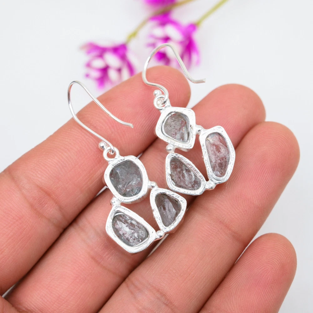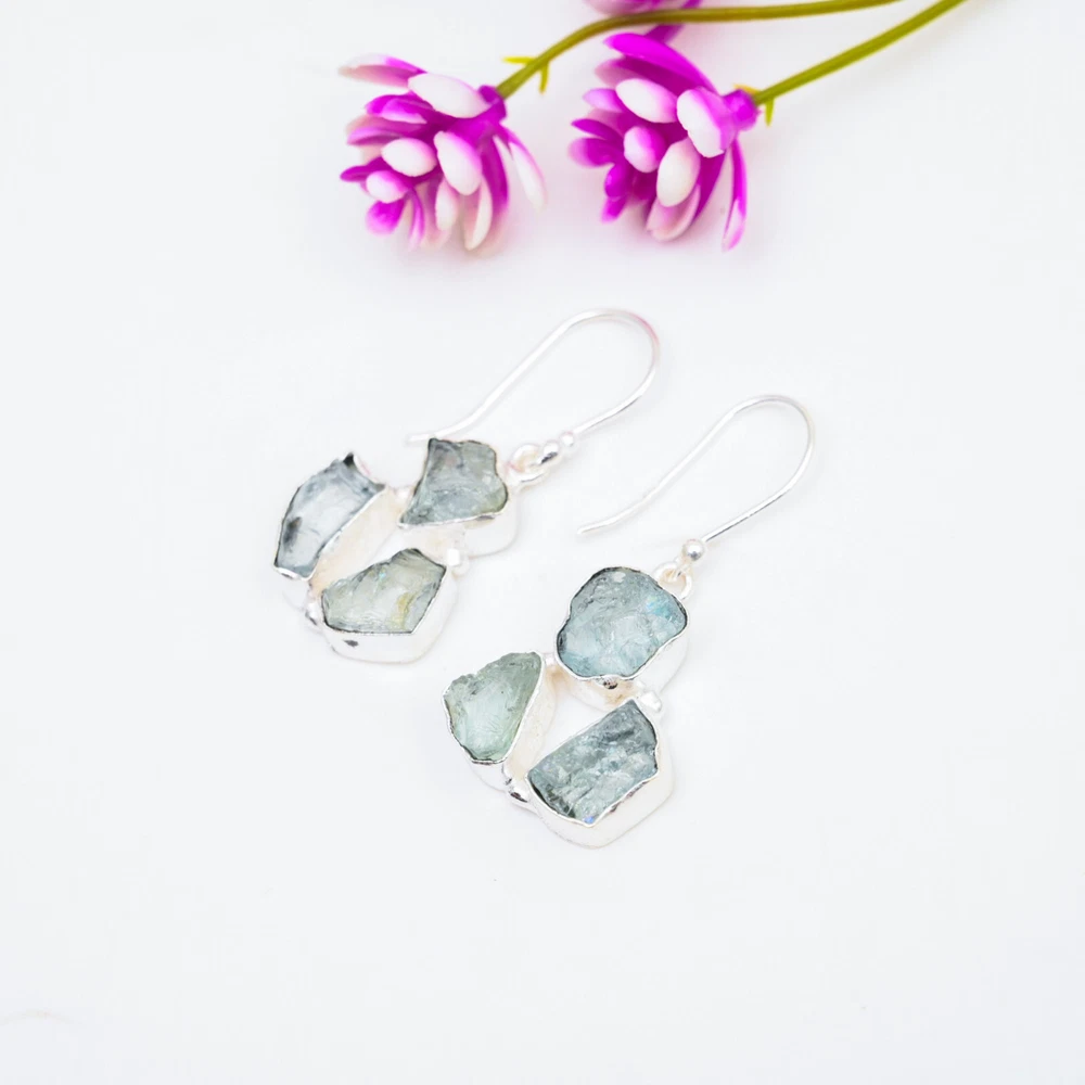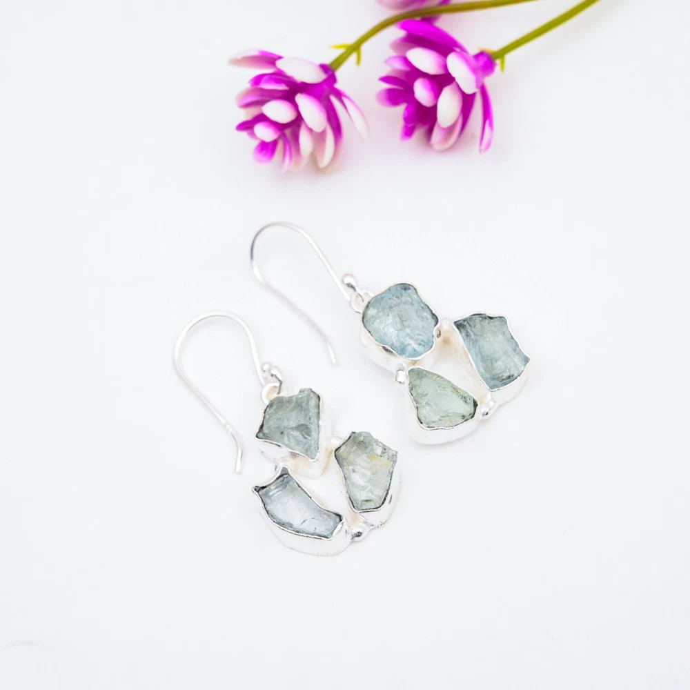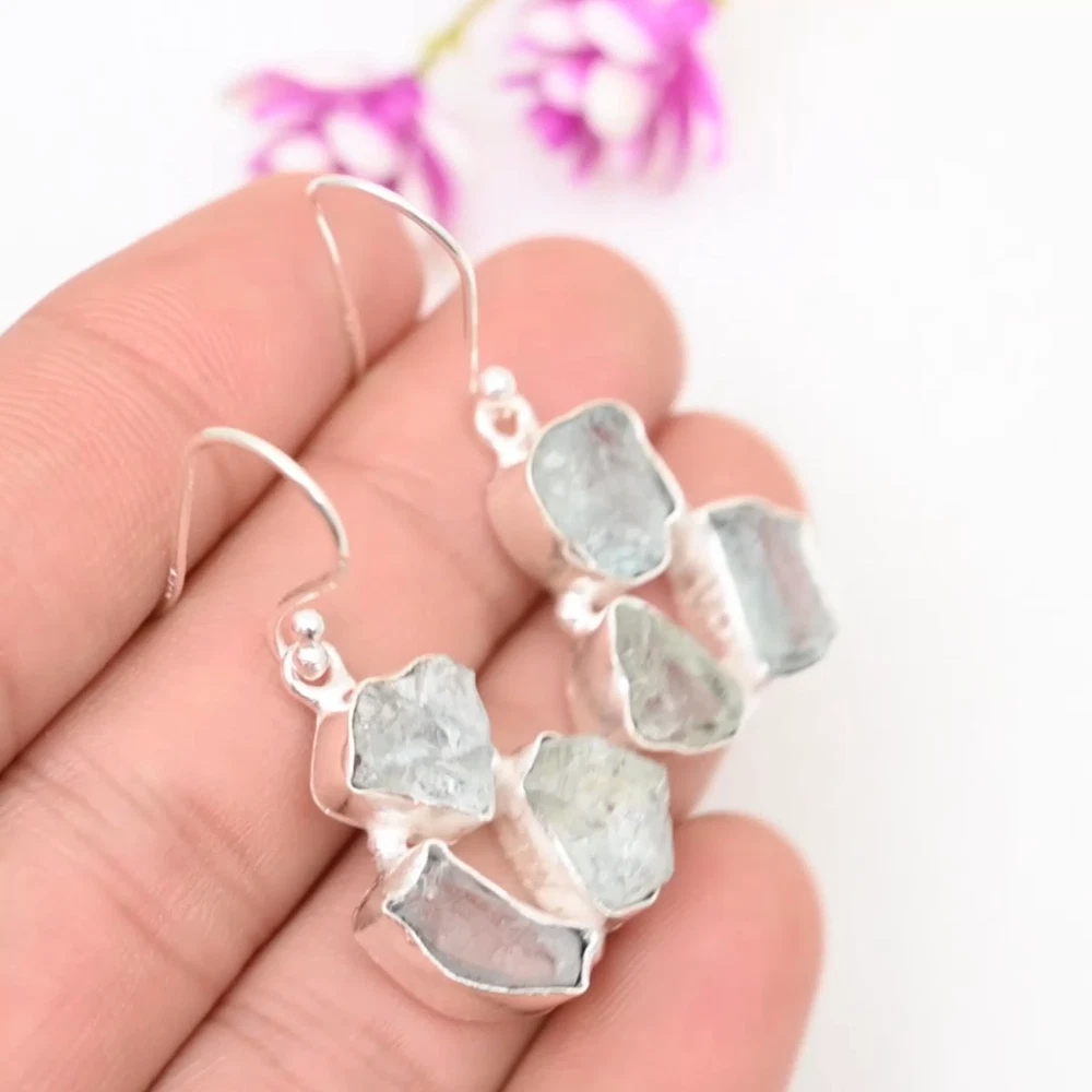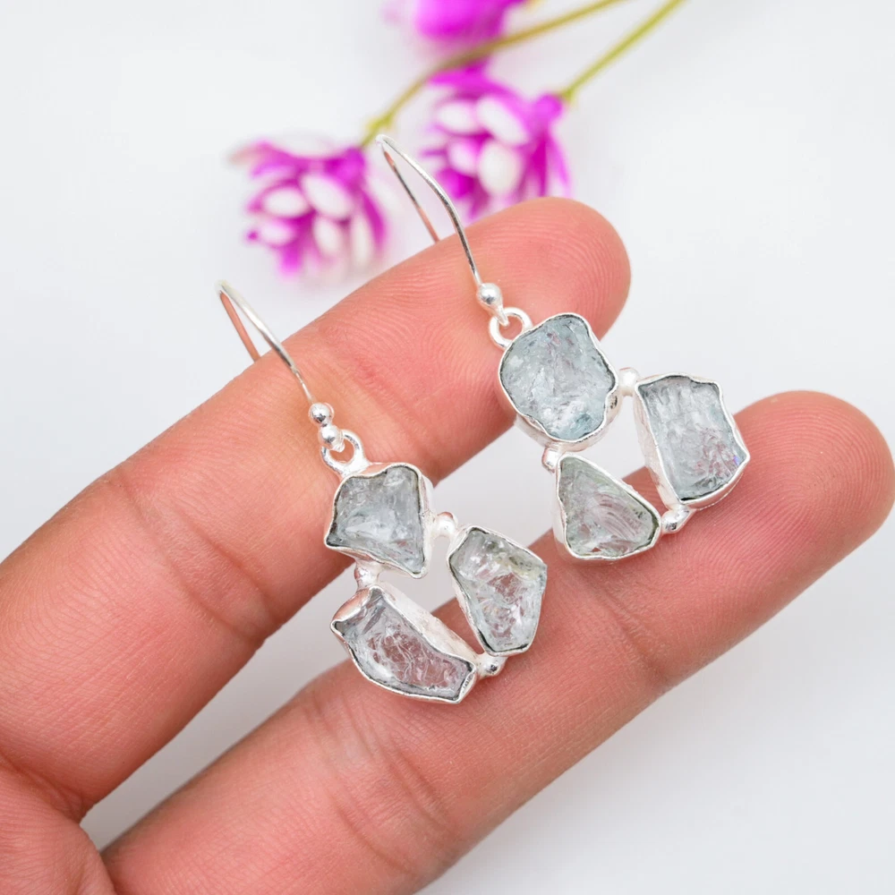 Amezing Aquamarine Gemstone Earrings 925 Sterling Silver Handmade Jewelry Gift