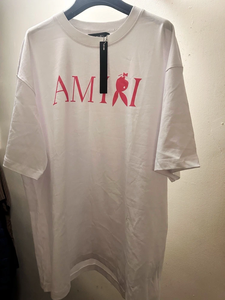Introducing the Amiri Playboy Pink reverse bunny T-Shirt, perfect for any designer, hip hop enthusiast. This classic fit, short sleeve shirt features a crew neck and a unique graphic print of the Playboy logo. Made of 100% cotton, this shirt is machine washable and suitable for all seasons. The shirt is available in XL size and comes in a stylish white color with accents of pink. The Amiri brand is known for its quality and this shirt is no exception. It is a great addition to any wardrobe and perfect for casual occasions. New withdout tag , measurements in the pictures ask any questions for any more informactions .