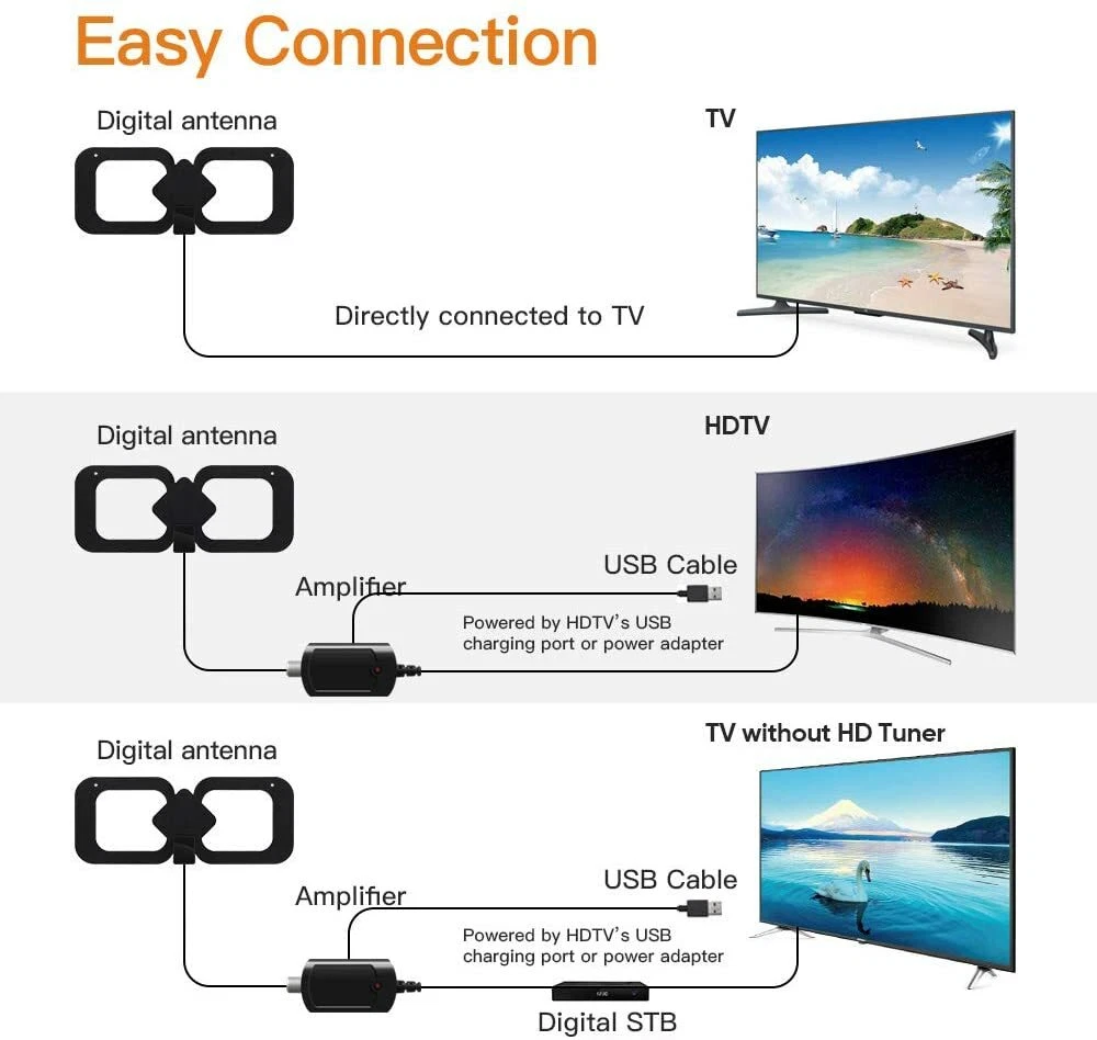 Amplified Digital HD TV Antenna 200 Miles Range - Support 4K 1080P Fire TV Stick and All TV's with Latest Indoor Powerful HDTV Amplifier Singal Booster - 13.2ft Coax Cable[Stronger Reception] : The HDTV antenna is large enough to receive TV signals up to 200 miles, and it carries signal amplifiers, making it easier to amplify the antenna to get the best reception when you put it anywhere in your home, covering almost every home and area. If you live within 35 miles of the broadcasting tower, turn the loudspeaker to "short distance",Built-in high quality state-of-the-art nanotechnology for maximum strength increases the reception capacity of the TV antenna.[Lightweight and Unique Design]: Light and flat design, beautiful enough and easy to ins... Amplified Digital HD TV Antenna 200 Miles Range - Support 4K 1080P Fire TV Stick Amplified Digital HD TV Antenna 200 Miles Range - Support 4K 1080P Fire TV Stick and All TV's with Latest Indoor Powerful HDTV Amplifier Singal Booster - 13.2ft Coax Cable [Stronger Reception] : The HDTV antenna is large enough to receive TV signals up to 200 miles, and it carries signal amplifiers, making it easier to amplify the antenna to get the best reception when you put it anywhere in your home, covering almost every home and area. If you live within 35 miles of the broadcasting tower, turn the loudspeaker to "short distance",Built-in high quality state-of-the-art nanotechnology for maximum strength increases the reception capacity of the TV antenna. [Lightweight and Unique Design]: Light and flat design, beautiful enough and easy to install, you can hide it behind the TV set or stick it on the window wall or anywhere you like, of course, TV signals must be accepted there. [ High Quality Coaxial Cable]: Coaxial cable is composed of solid center conductor, dielectric insulation, three aluminum shielding layers and durable outer layer. so that you will never lose signal or suffer distortion even in bad weather. From electromagnetic and radio frequency interfere. [Full HD Channels]: With BEFORE upgraded tv antenna no more need to pay a huge bill on tv. BEFORE HD antenna can receive full HD Channels like ABC, CBS, NBC, PBC, Fox and so much more. With amplified tv antenna start to access all of the news, sitcoms, kids and sports programs! Advanced tool for life to receive the channel without monthly bill! [ Note ]: Always remember re-scan for channels after moving the Antenna. Visit - "dtv gov maps" information is useful. Long Range Amplifier TV Antenna Our smart tv antenna adopt upgraded Amplifier Signal Booster with built-in Smart IC Chip Next generation and Crystal Clear Filter Technology to picks up signals within 200 miles range. Depending on your location, the HDTV antenna can receive include NBC, FOX, CBS, ABC, PBS, THE CW, QUBO, TELEMUNDO, UNIVISION, RTV, THIS TV, ION, ME TV, the weather channels and so much more. Your household electrical appliances, such as air conditioner, refrigerator, microwave oven, etc. and outside Pylons may weak the signal reception. Install in Less Than 3 Minutes 1) Connect to 'ANT IN' on the back of any digital TV. 2) Place hdtv antenna in an optimal position, usually window or on a wall. 3) Scan channels by selecting 'Menu' then 'Channel Search' and you are ready to enjoy your best TV programs. Your household electrical appliances, such as air conditioner, refrigerator, microwave oven, etc. and outside Pylons may weak the signal reception. 4K Picture Quality Watch over 500,000 movies and TV episodes come to life in vibrant colors and detailed contrast through Our indoor HD Antenna connected directly to your TV.Including local news, weather forecast and sitcoms, kids and sports programs, etc. The streaming services also are not all-inclusive yet and might leave out local channels that are independently owned or not part of a major broadcast network. So to stay on top of live local programming, quality reception is a must-have.enjoying the most vivid colors and amazing sounds just by this amazing little antenna! Item Specifics Model Antenna Type Hdtv Antenna Brand Digital Antenna Maximum Range 200 miles Shipping with the most suitable logistics from USPS/UPS/FedEx; Buyers usually receive the package within 3-5 days; Contact us via eBay Message, We will resolve it within 8 hours; Your feedback is very important to my newly opened store; Amplified Digital HD TV Antenna 200 Miles Range - Support 4K 1080P Fire TV Stick Amplified Digital HD TV Antenna 200 Miles Range - Support 4K 1080P Fire TV Stick and All TV's with Latest Indoor Powerful HDTV Amplifier Singal Booster - 13.2ft Coax Cable [Stronger Reception] : The HDTV antenna is large enough to receive TV signals up to 200 miles, and it carries signal amplifiers, making it easier to amplify the antenna to get the best reception when you put it anywhere in your home, covering almost every home and area. If you live within 35 miles of the broadcasting tower, turn the loudspeaker to "short distance",Built-in high quality state-of-the-art nanotechnology for maximum strength increases the reception capacity of the TV antenna. [Lightweight and Unique Design]: Light and flat design, beautiful enough and easy to install, you can hide it behind the TV set or stick it on the window wall or anywhere you like, of course, TV signals must be accepted there. [ High Quality Coaxial Cable]: Coaxial cable is composed of solid center conductor, dielectric insulation, three aluminum shielding layers and durable outer layer. so that you will never lose signal or suffer distortion even in bad weather. From electromagnetic and radio frequency interfere. [Full HD Channels]: With BEFORE upgraded tv antenna no more need to pay a huge bill on tv. BEFORE HD antenna can receive full HD Channels like ABC, CBS, NBC, PBC, Fox and so much more. With amplified tv antenna start to access all of the news, sitcoms, kids and sports programs! Advanced tool for life to receive the channel without monthly bill! [ Note ]: Al