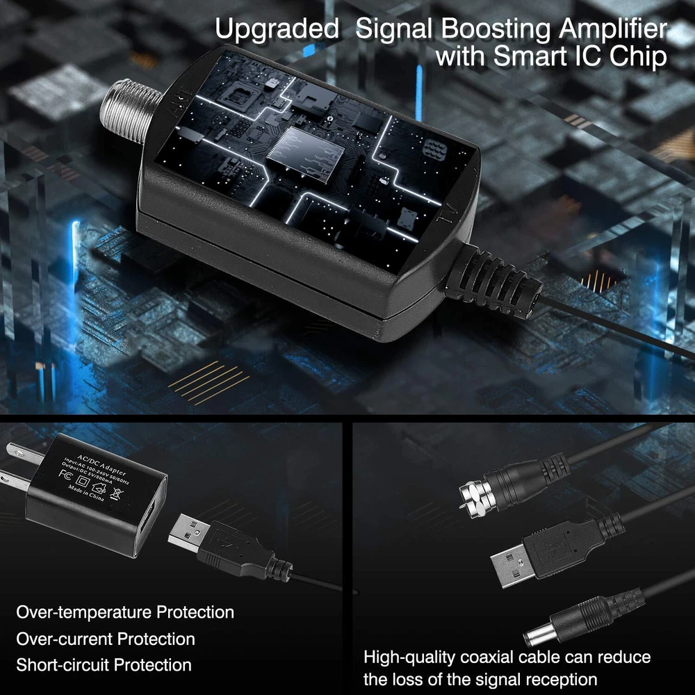 FULL HD CHANNELS: With UPGRADED 2024 antenna no more need to pay a HUGE bill on TV. Our HD antenna can receive FULL HD Channels like ABC, CBS, NBC, PBC, Fox and SO MUCH MORE. With amplified tv antenna start to access all of the news, sitcoms, kids and sports programs! ADVANCED TOOL FOR LIFE TO RECEIVE THE CHANNEL WITHOUT MONTHLY BILL! 300 MILES RANGE: The indoor HDTV antenna can reach up to 300 miles and can be placed almost anywhere in your Home. Digital antenna constantly scans for new channels as they're made available for broadcast. Hang the indoor antenna on a window or wall, or better position where owns better reception of your House. FUHD CRYSTAL-CLEAR TV & HD SOUND QUALITY: smart tv antenna adopts upgraded with new Generation Smart Switch control Powerful Amplifier Signal Booster with built-in Smart IC Chip Next generation & Crystal Clear Filter Technology to picks up signals within 300 miles range. The new technology filters out cellular and FM signals resulting in clearer picture, low noise and access to more free broadcast TV signals with enhanced gain, range and frequency performance. 17 ft Coaxial Cable &USB Power Adapter: Digital TV Antennas Include Standard Coax Cables With Stronger Copper Wiring This Coaxial Cable of Durable Construction Removes Signal Interference Bringing Superior HD Reception And Powerful Signal Reliability Smart USB Power Adapter With Built-In Overvoltage Protection Will Help You If there Is Not USB Output For Connecting TV Antenna To The Power Supply Note: Please remember to re-scan for channels after moving the Antenna. Please switch the amplifier to "short range" if your house is very close to the broadcast tower (within 35 Miles).roduct, 12 months manufacturer warranty and 24/7 hours customer service High-quality product, 12 months manufacturer warranty and 24/7 hours customer service