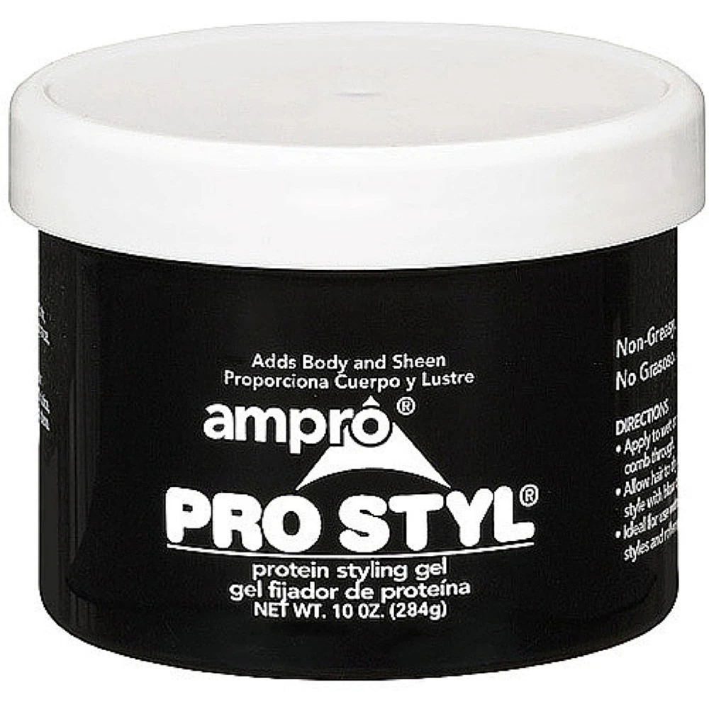 Product Description Ampro Pro Styl Regular Hold Protein Styling Gel, Moisturizing 10oz (6 Pack) Ampro Pro Styl Regular Hold Protein Unisex Styling Gel - because you want a styling gel that gives you the perfect look the first time, every time! Our legendary vegan, alcohol-free styling gel is uniquely formulated to provide the hard, firm hold you need to achieve the styles you desire for all hair types. This gel is designed for sculpting and molding hair styles and for protective hair styles with resistant hair textures. SAY GOODBYE TO FLYAWAYS. With this wonder-working gel, you can define your natural hair and tame lose strands with a firm, non-greasy hold, while also giving your hair a fresher, healthier shine. PROTEIN RICH FORMULA. Strengthen your hair with this protein-enriched gel, to boost your hair's resilience and leave it looking and feeling healthy. It protects your hair during styling and is great for natural hair and textured styles. GOODBYE FLAKES AND GREASE. Enjoy soft, manageable waves and curls by using this non-greasy gel. The moisturizing formula is non-flaking and distributes easily throughout your hair, to help create any hairstyle on any hair texture. A LEGACY PRODUCT LINE. Ampro, which stands for American Products, is a leading beauty manufacturer, established since 1947. We produce top-quality personal care products for hair, body, and skin, free of alcohol, parabens, sulfates, and dyes. MULTICULTURAL HAIR CARE PRODUCTS. Ampro is continuously expanding its hair care line by adding exciting new products, like our Shine 'n Jam Magic Fingers, the Ampro Pro Styl Olive Oil Styling Gel, and our newest kid's line, Ampro's Beautiful Child. Ingredients Water/Aqua, Carbomer, Sodium Hydroxide, Caramel, Propylene Glycol, DMDM Hydantoin, Fragrance/Parfum, Hydrolyzed Soy Protein, Benzoic Acid, Limonene, Iodopropynyl Butylcarbamate, Coumarin, Citral, Linalool, Citronellol