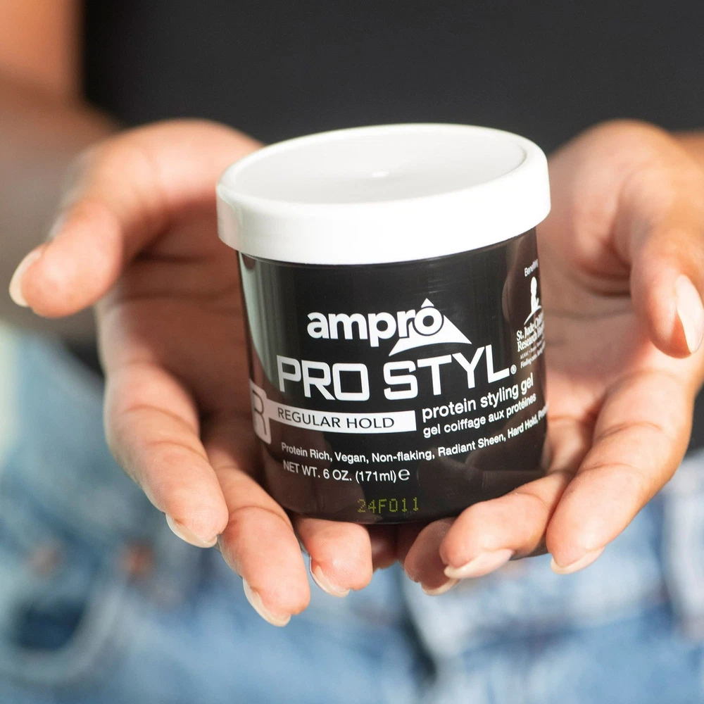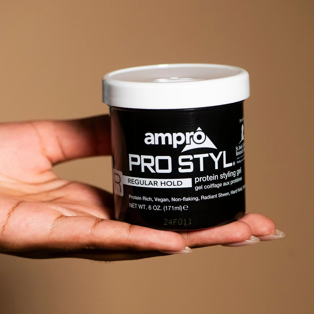 Product Description Ampro Pro Styl Regular Hold Protein Hair Styling Moisturizing Gel, Unisex, 6oz (3 Pack) Ampro Pro Styl Regular Hold Protein Unisex Styling Gel - because you want a styling gel that gives you the perfect look the first time, every time! Our legendary vegan, alcohol-free styling gel is uniquely formulated to provide the hard, firm hold you need to achieve the styles you desire. This gel is designed for sculpting and molding hair styles and for protective hair styles with resistant hair textures. SAY GOODBYE TO FLYAWAYS. With this wonder-working gel, you can define your natural hair and tame lose strands with a firm, non-greasy hold, while also giving your hair a fresher, healthier shine. PROTEIN RICH FORMULA. Strengthen your hair with this protein-enriched gel, to boost your hair's resilience and leave it looking and feeling healthy. It protects your hair during styling and is great for natural hair and textured styles. GOODBYE FLAKES AND GREASE. Enjoy soft, manageable waves and curls by using this non-greasy gel. The moisturizing formula is non-flaking and distributes easily throughout your hair, to help create any hairstyle on any hair texture. A LEGACY PRODUCT LINE. Ampro, which stands for American Products, is a leading beauty manufacturer, established since 1947. We produce top-quality personal care products for hair, body, and skin, free of alcohol, parabens, sulfates, and dyes. MULTICULTURAL HAIR CARE PRODUCTS. Ampro is continuously expanding its hair care line by adding exciting new products, like our Shine 'n Jam Magic Fingers, the Ampro Pro Styl Olive Oil Styling Gel, and our newest kid's line, Ampro's Beautiful Child. Ingredients Water/Aqua, Carbomer, Sodium Hydroxide, Caramel, Propylene Glycol, DMDM Hydantoin, Fragrance/Parfum, Hydrolyzed Soy Protein, Benzoic Acid, Limonene, Iodopropynyl Butylcarbamate, Coumarin, Citral, Linalool, Citronellol