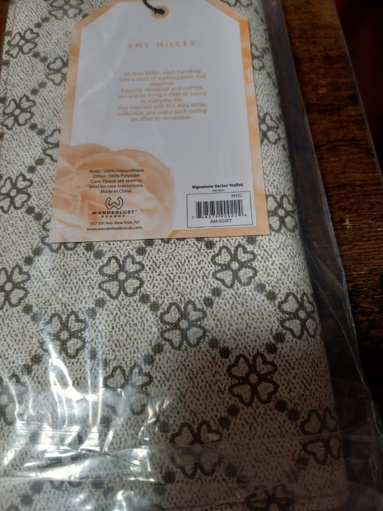 Amy Miller Designer Signature Series WALLET new with tag & and inside clear bag This Amy Miller Designer Signature Series wallet is a must-have for any fashion-savvy woman. With its zip-around style and beautiful beige color, it is the perfect accessory to complete any outfit. The wallet features a unique 4 leaf clover theme, making it a one-of-a-kind piece. Crafted with high-quality materials, this wallet is brand new with tags and comes with an inside clear bag for added protection. It is the ideal choice for those who want to make a statement with their accessories. Perfectly suited for any occasion, this Amy Miller Designer Signature Series wallet is a true standout piece in any collection. Thank you for taking the time to shop with me. Live Laugh Love BUY IT! ππ Your purchase will be greatly appreciated π Seniors can make some extra π° money in retirement by selling items online.