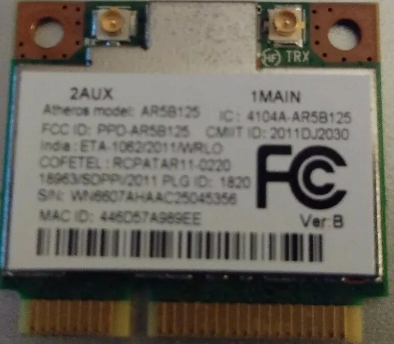 Laptop wifi adapter chip Pulled from a broken laptop 802.11n connection type Used, as is.