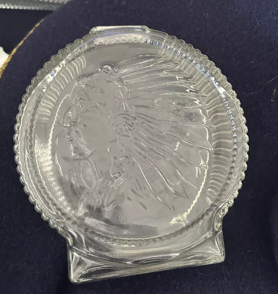 The Anchor Hocking Glass Buffalo Nickel Indian Bank is a collectible still bank made of glass. It features a design inspired by the buffalo nickel and Indian head coin, making it a unique and visually appealing piece for collectors. This bank is a nostalgic and charming item that adds character to any collection of vintage or unique piggy banks. Keep checking back for more collectibles and glassware!
