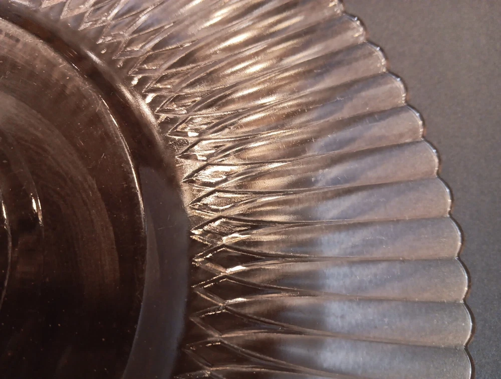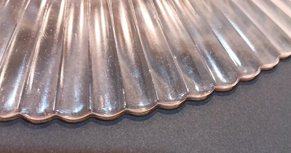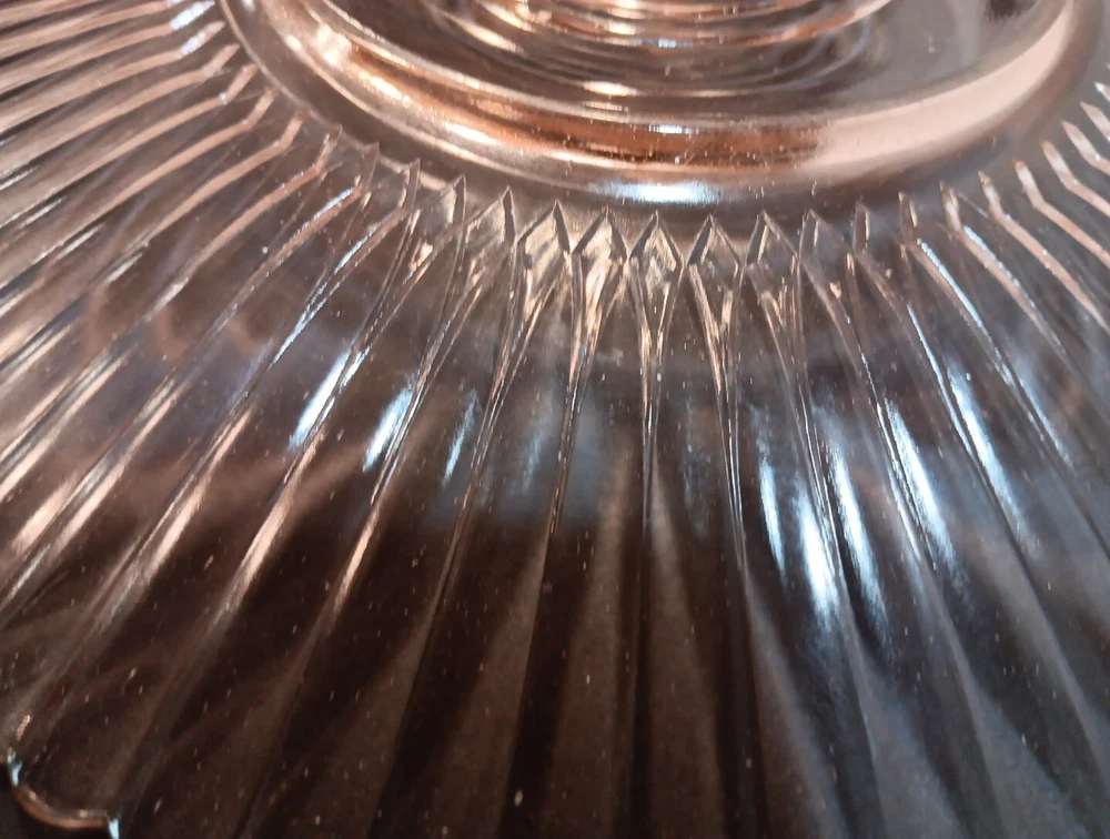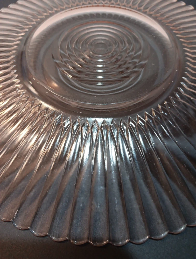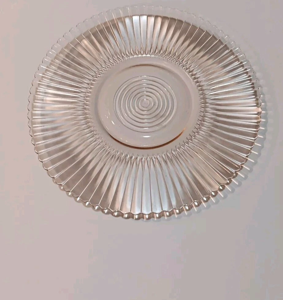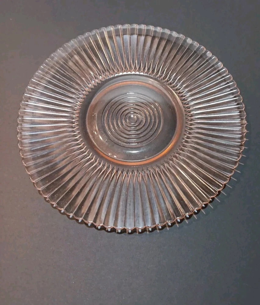 Add a touch of vintage elegance to your serving collection with this Anchor Hocking Pink Depression Glass Serving Plate. Ribbed in design and measuring 10.5 inches, this platter showcases the timeless beauty of mid 20th century glassware. Its polished finish enhances the classic charm of this pressed glass piece, making it a standout addition to any table setting. Crafted in the United States during the 1940s, this original piece embodies the essence of depression glass. Its round shape and fusion of style and functionality reflect the era's craftsmanship. Ideal for all occasions, this serving plate is a lovely reminder of America's rich glassmaking heritage.