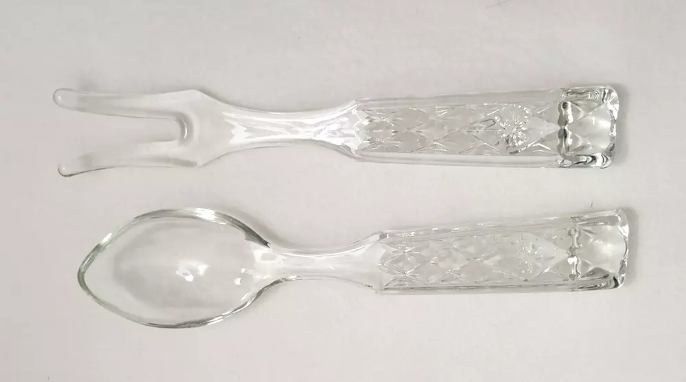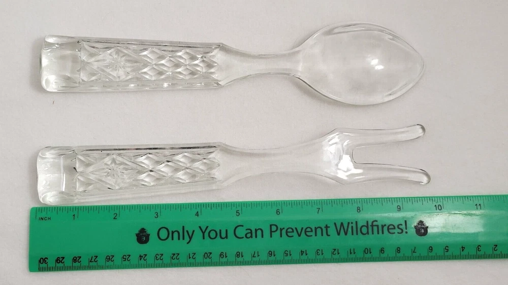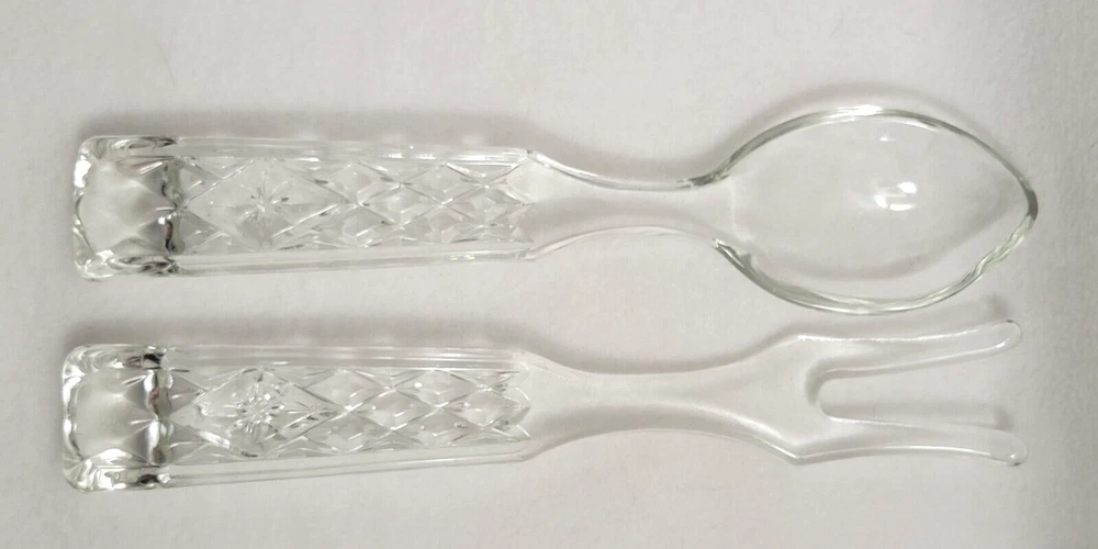 Anchor Hocking Wexford Pattern Glass Fork & Spoon Salad Serving Set MCM Each item is carefully packaged to prevent any damage and is shipped immediately with tracking.
