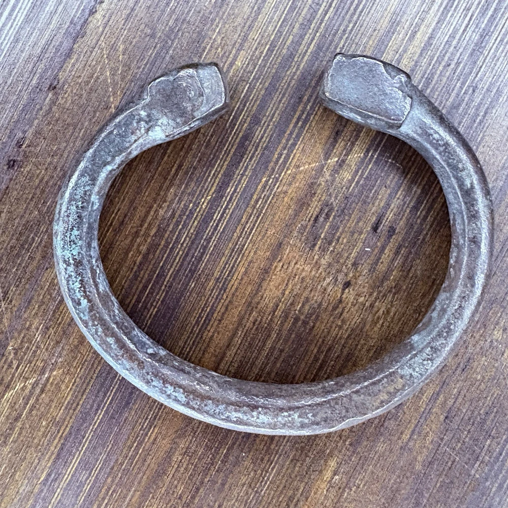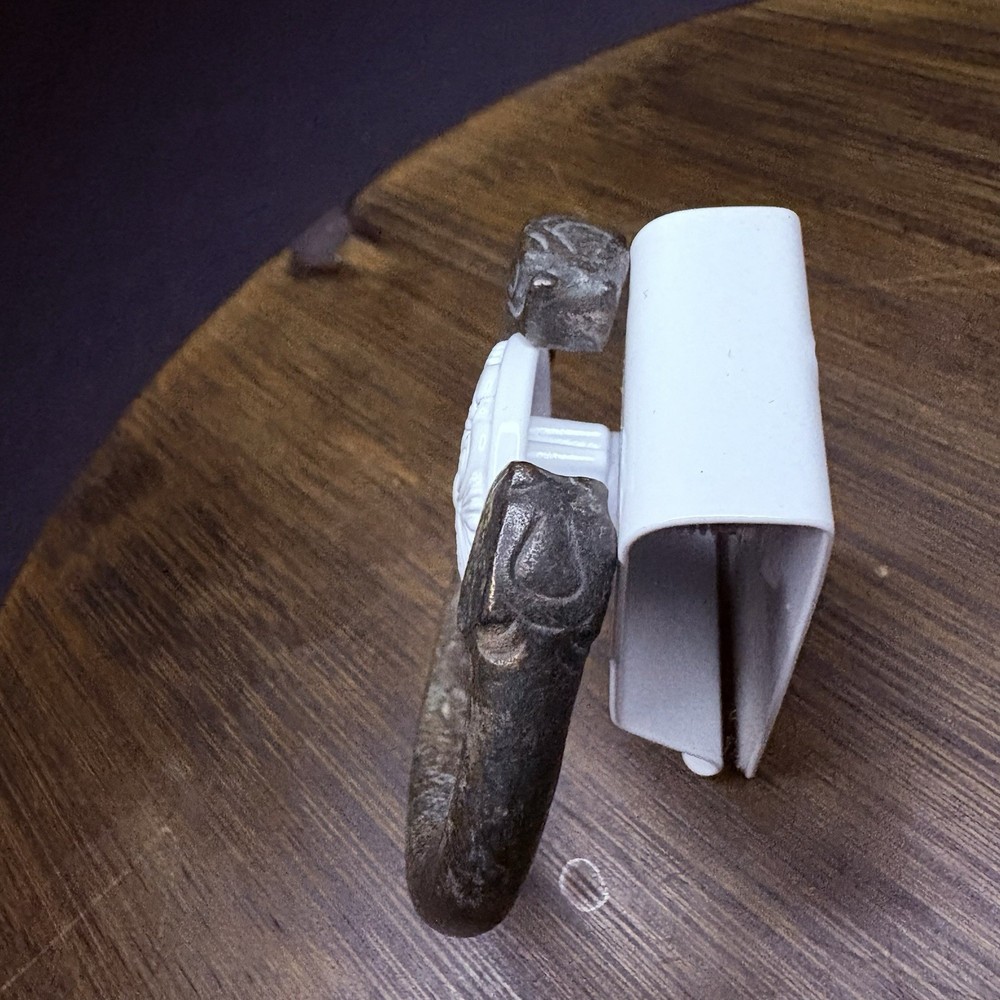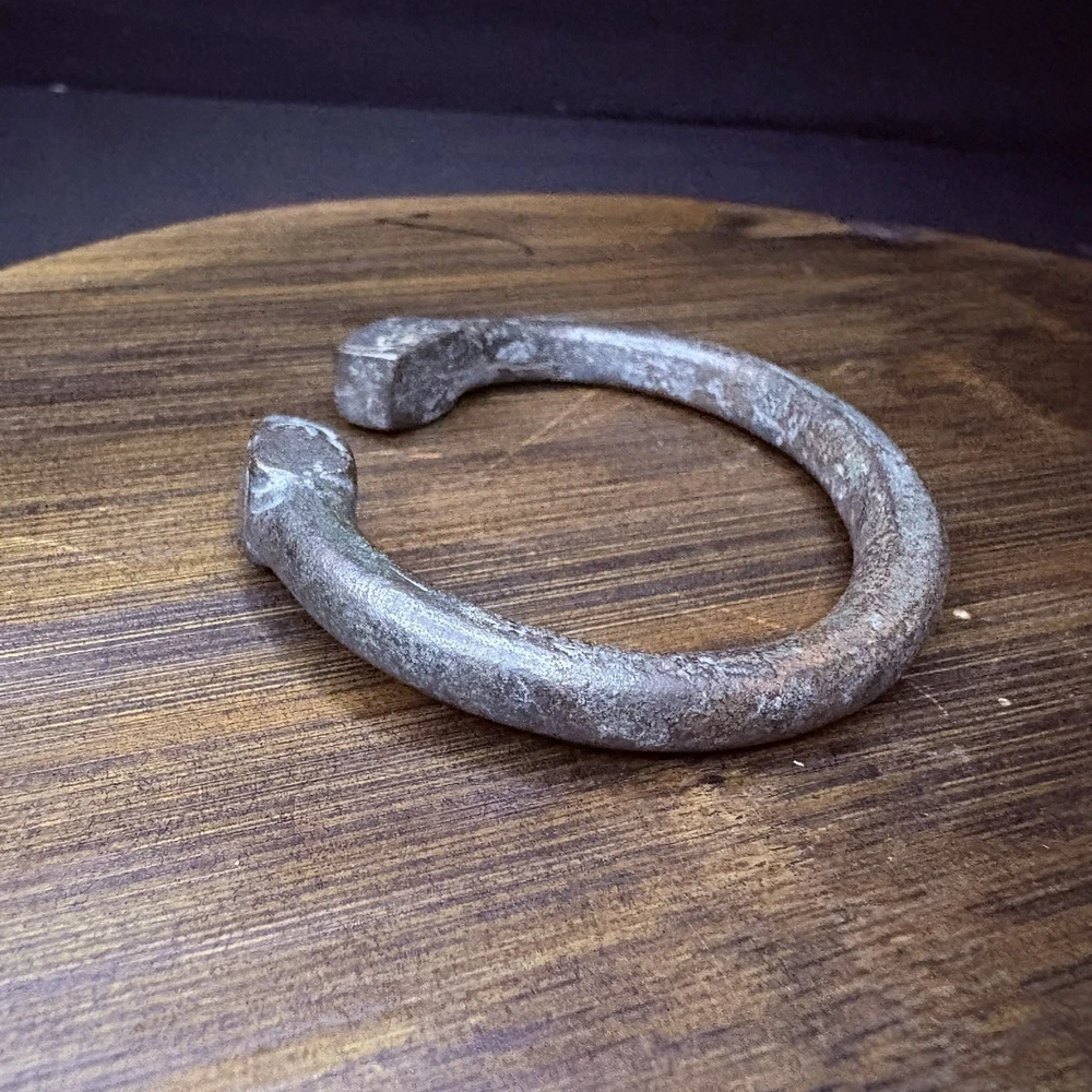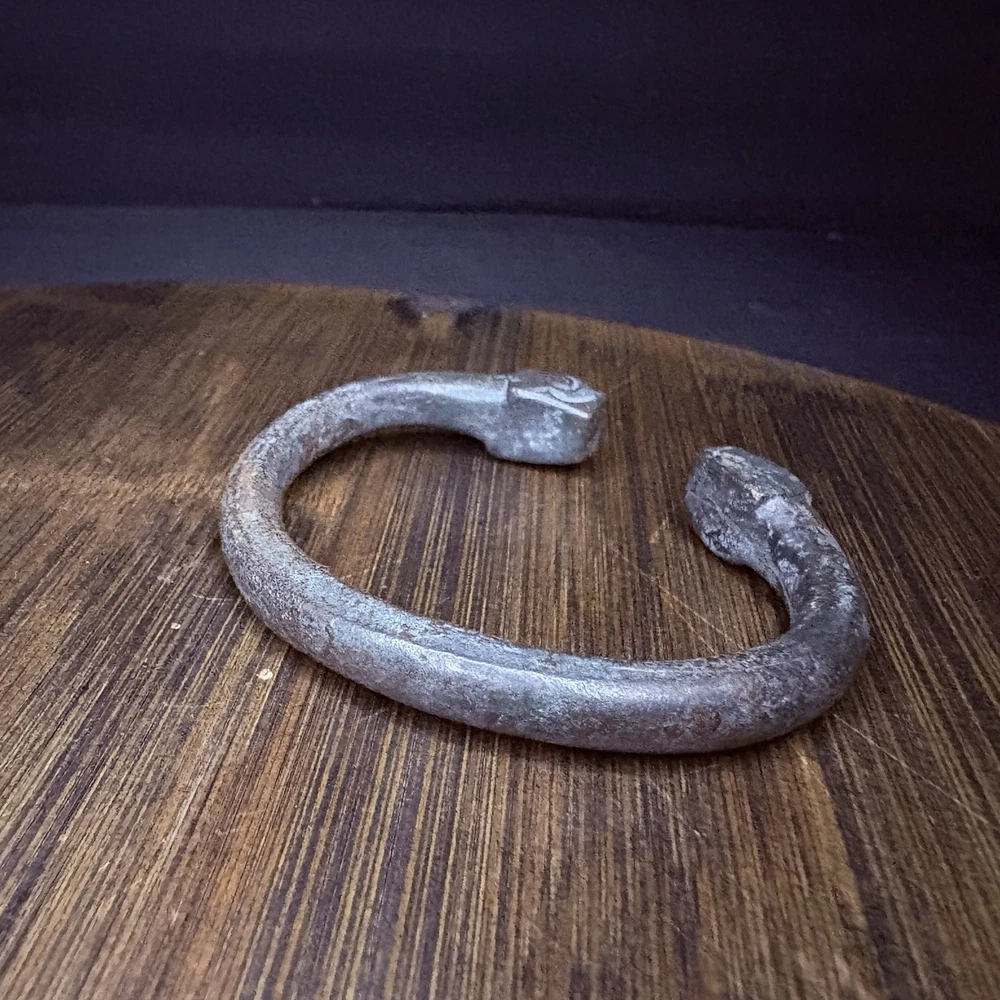 The bangle likely originated near East / Central Asia, Turkey or Persia during the achaemenid empire from 6th to 2nd century BCE. This is an ancient cast bronze bracelet terminating in stylized zoomorphic heads, possibly representing lions, boars, or mythical beasts. The bracelet display a smooth curvature with terminal detailing that echoes protective or symbolic animal motifs seen across ancient eastern and mediterranean ornamentation. Likely worn in antiquity as talismans or symbols of identity and wealth. These bangles would usually be buried with the deceased. Condition: Pitting and abrasions, but intact. Softening to details on the smallest. Dark patina and oxidation. Size: 2.9" Diameter x 0.4" W (7.4 cm x 1 cm); gap opening: 0.8" W (2 cm) Provenance: ex-Phoenicia Holyland Antiquities, New York, New York, USA, acquired before 2010 . This item is legal to buy/sell under U.S. Statute covering cultural patrimony Code 2600, CHAPTER 14, and are guaranteed to be as described or your money back.