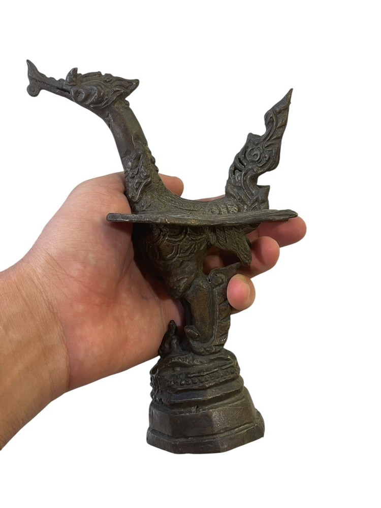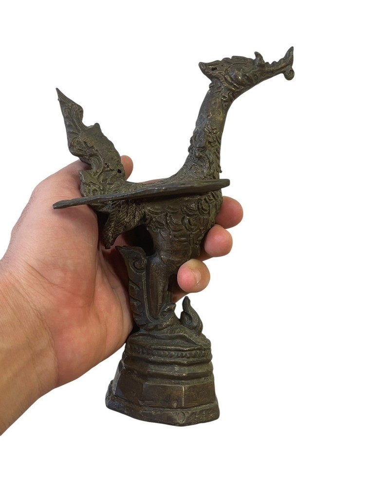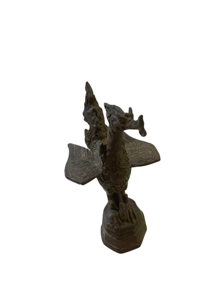 Extremely rare ancient Greek bronze mythical bird statue sculpture. This original piece showcases an antique style and is made of bronze, making it both a unique and valuable collector's item. The detailed craftsmanship and historical significance of this sculpture would make it a prized addition to any antique collection or display.