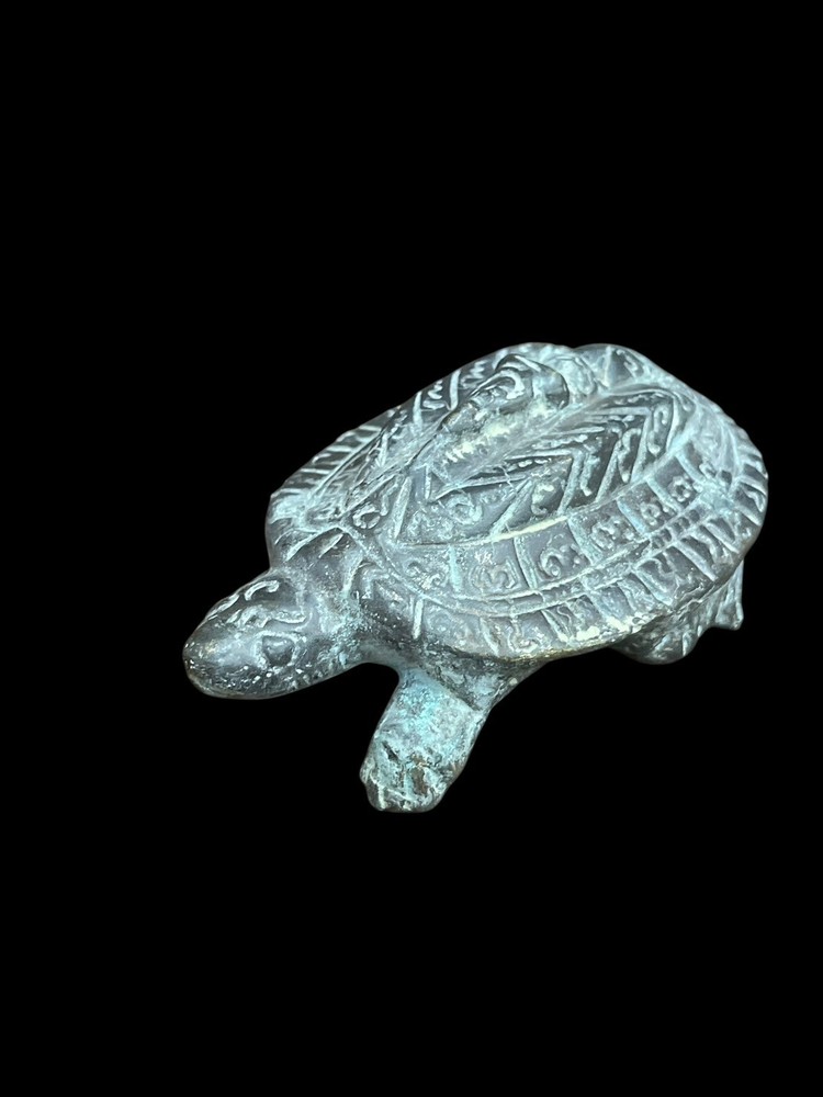 Ancient Indo-Greek bronze turtle figur sculpture with a rich patina, showcasing intricate details and craftsmanship. Made from high-quality bronze, this figurine captures the essence of ancient artistry and design. The rich patina adds to the historical significance and aesthetic value of the piece, making it a unique and collectible item for those interested in antiques and ancient artifacts.