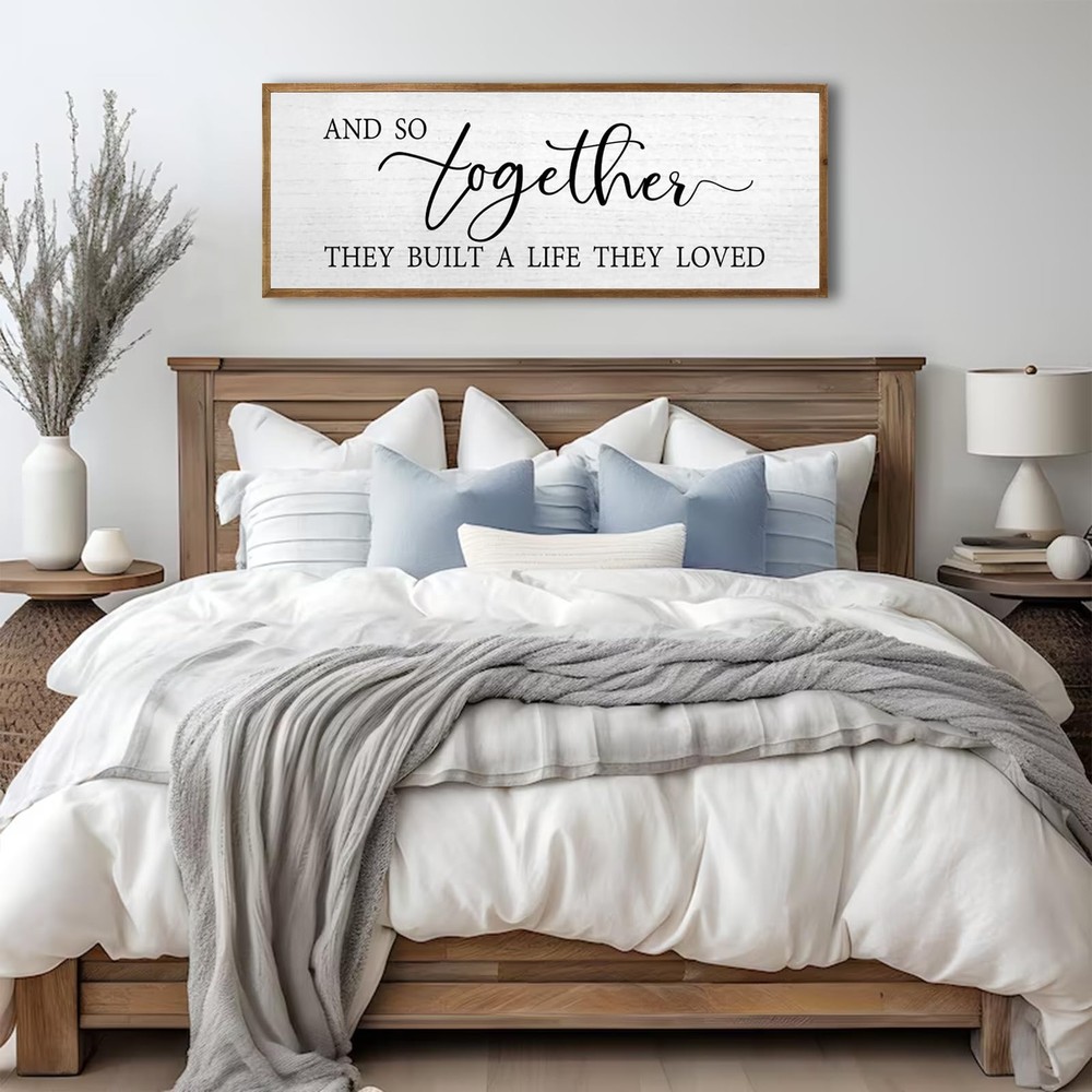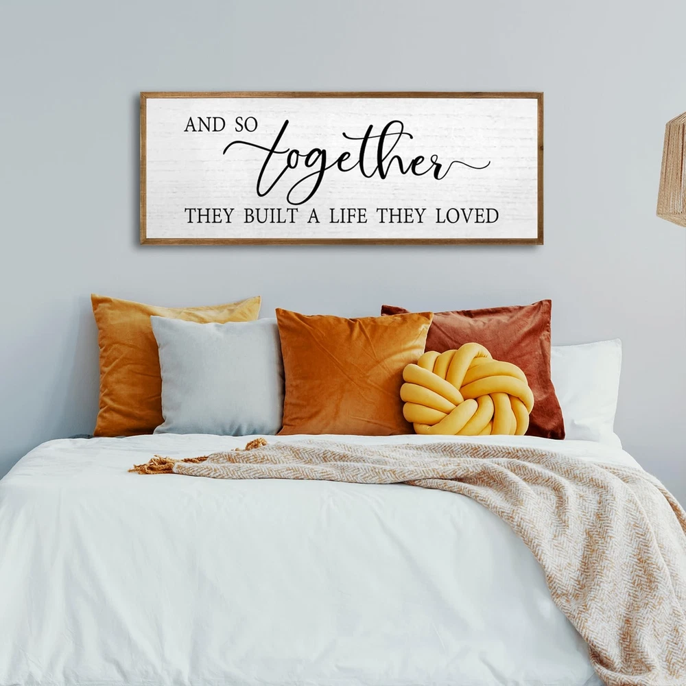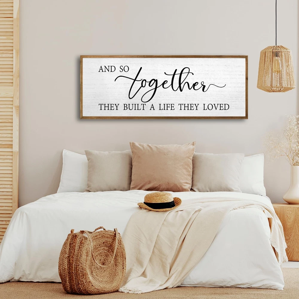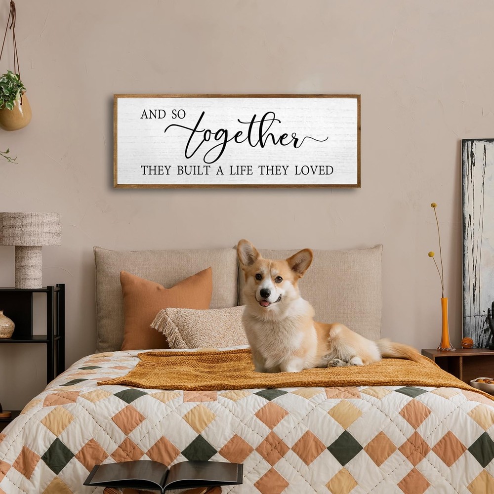 Our framed wall decoration is a quality piece, made from selected high-quality wood, which is wear and tear resistant, lightweight yet in good shape, suitable for a variety of room layouts, adding a warm atmosphere to your home, And it is a great gift to give to lovers, family, father, mother, friends, colleagues, let your home be surrounded by love and affection. 【Preferred Material】: This wall decoration is made of high-quality wood, and the fonts are printed with UV ink, which will not fall off, crack, fade, and is safe to use. 【Easy to Use】: The wall sign 32"x12"x1" and has 2 pre-installed hooks on the back, so you can hang the wood sign on nails or hooks and instantly add beauty to a boring wall. 【Carefully Crafted】: Each piece of rustic wall art is unique, the overall frame is hand-dyed, the colors are bright and will not fade, and can be cleaned with a damp cloth without damaging the print. 【Multifunctional Decoration】: This decoration is designed to blend seamlessly into your home or office décor, it can be hung on the wall or placed on shelves and table tops, place it in the hallway, kitchen, bedroom, near the TV, for your Add warm tones to the house. 【Wonderful Gift】: Our wooden wall sign makes a great housewarming, anniversary, engagement and wedding gift, conveys a strong warm family atmosphere and can bring a romantic feel to your modern farmhouse and living room, making you Home is surrounded by love.