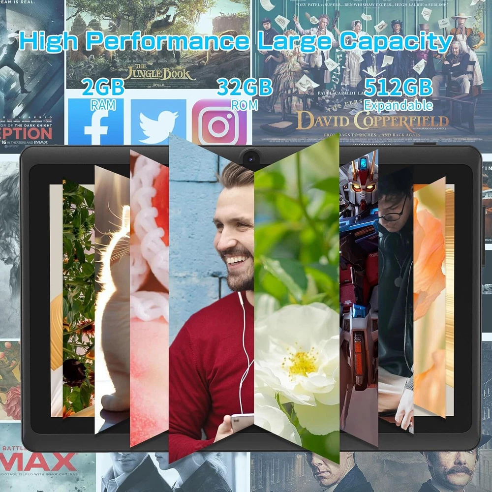 Android Tablet for Kids,7 inch Tablet,32GB ROM(512GB Expand) Blue 01 Product Details Standing screen display size: 7 Inches Screen Resolution: 1024 x 600 pixels Max Screen Resolution: 1024*600 Pixels Processor: 1.5 GHz Graphics Coprocessor: PowerVR GE8300 Chipset Brand: Imagination Technologies Card Description: Integrated Wireless Type: 802.11ac Average Battery Life (in hours): 4 Hours Brand: NEWISION Model Name: K7 Memory Storage Capacity: 32 GB Screen Size: 7 Inches Display Resolution Maximum: 1024*600 Pixels 【High Performance Tablet PC】Our 7 inch android 11 tablet adopts the latest android 11.0 system,powerful and energy-efficient quad-core processor,which makes the apps run faster and smoother,and offers you a quick and fluent experience of entertainment. 【2GB RAM + 32GB ROM】The toddler tablet comes with 2GB RAM,32GB ROM,and includes a micro SD slot,supports 512G capacity expansion,that is larger than other 7 inch tablet.Owning enough space to keep all your favorite multi-medias on your tablet,such as emails,photos,games,music,videos,eBook,etc.,you can use it wherever you go. 【Android 11 Tablet】This smart android tablet has passed the GMS certification and pre-installed google play store,so you can download thousands of apps directly from google play store such as YouTube,Facebook,Tiktok,hulu,Twitter and so on. 【Easy to Carry&Special Case&Portable】The small wifi tablet is very light,weighing only 290g,which is easy to hold in hand.7 inch tablet PC comes with an extra case that protects it well,which protects the tablet from drops,scratches,shocks or dust, etc. 【Stylish Design&Practical】Android Tablet 7 inch is equipped with 3000 mAh battery with a 1024 x 600 display and low power consumption CPU,which can provides more than 4 hours of mixed-use,allowing you to enjoy watching TV shows,surfing the web,reading,playing light games and more. Tablet with case 7 inch tablet Small Tablet Tablet with SD Card slot 7 inch tablet on sale