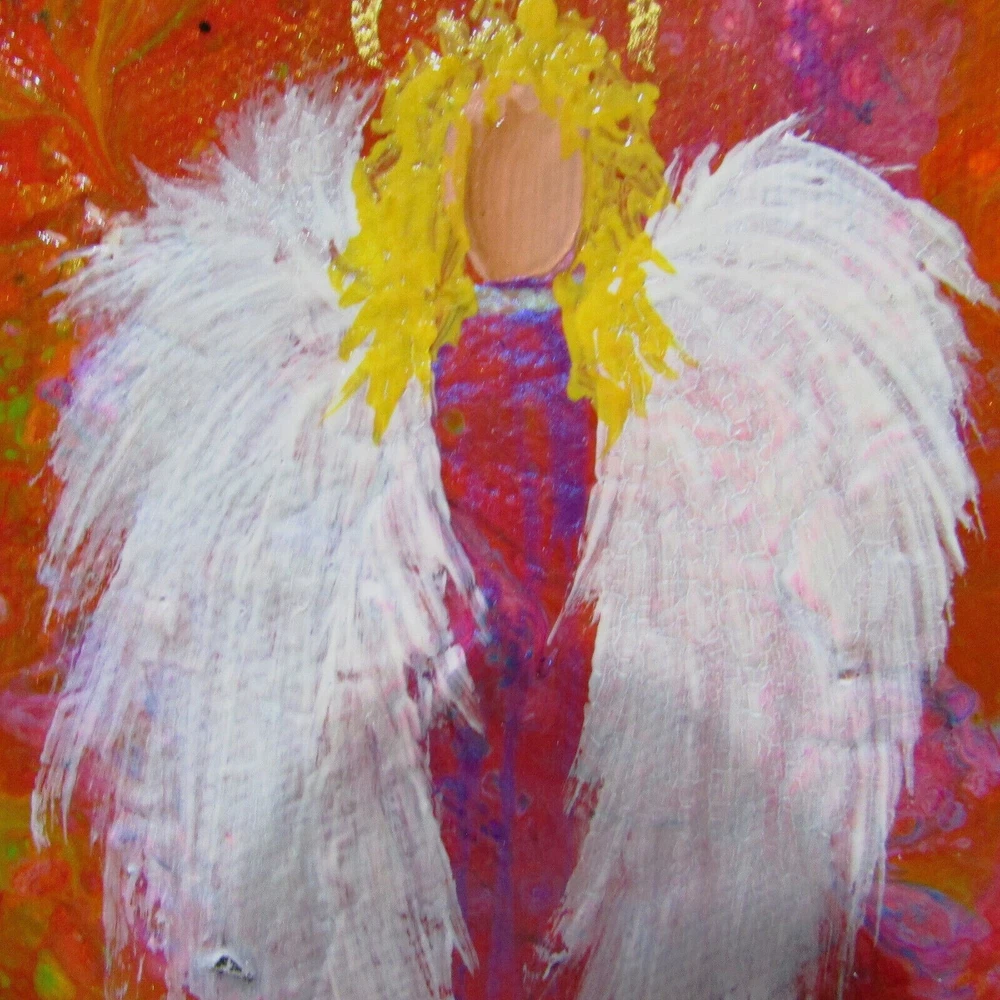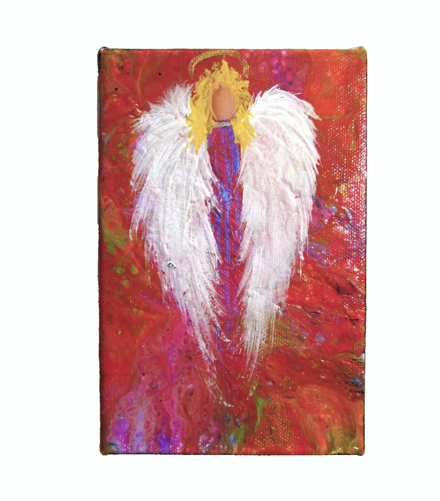 This colorful painting represents the angel who teaches us the importance of being loyal to our beliefs . Painted by Rain Crow. It is multi colored with a pour painted background. It was painted on quality canvas and back stapled for security. It's multi color makes it usable for any space. You may frame it for a larger look. 4" x 6" x 3/4" Title: Angel of Loyalty Varnished. Please ask questions before purchase. Note: The photos are zoomed in to provide details. They may appear extremely large in the photos. Please see actual size above. COMBINED SHIPPING is available automatically at checkout. I cannot hold items after you pay. ALL items must be paid for at the same time. ANG-4x6-3/4