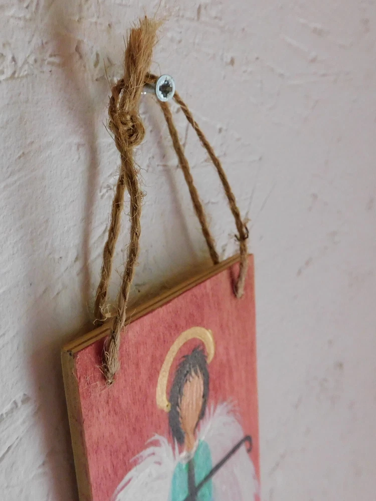 This is a hand painted wooden sign by Rain Crow, featuring a guardian angel and the word "forgiven". Reversed there is a Bible quote "As for me and my house we will serve the Lord" It has a jute hanger. Can use as ornament, an edition to a wreath, or hang as is. Varnished for protection. 7" x 3" x 1/8" Wood Signed on back Varnished. Please ask questions before purchase. Note: The photos are zoomed in to provide details. They may appear extremely large in the photos. Please see actual size above. COMBINED SHIPPING is available automatically at checkout. I cannot hold items after you pay. If you wish to combine, ALL items must be paid for at the same time. ART-ANWOOD
