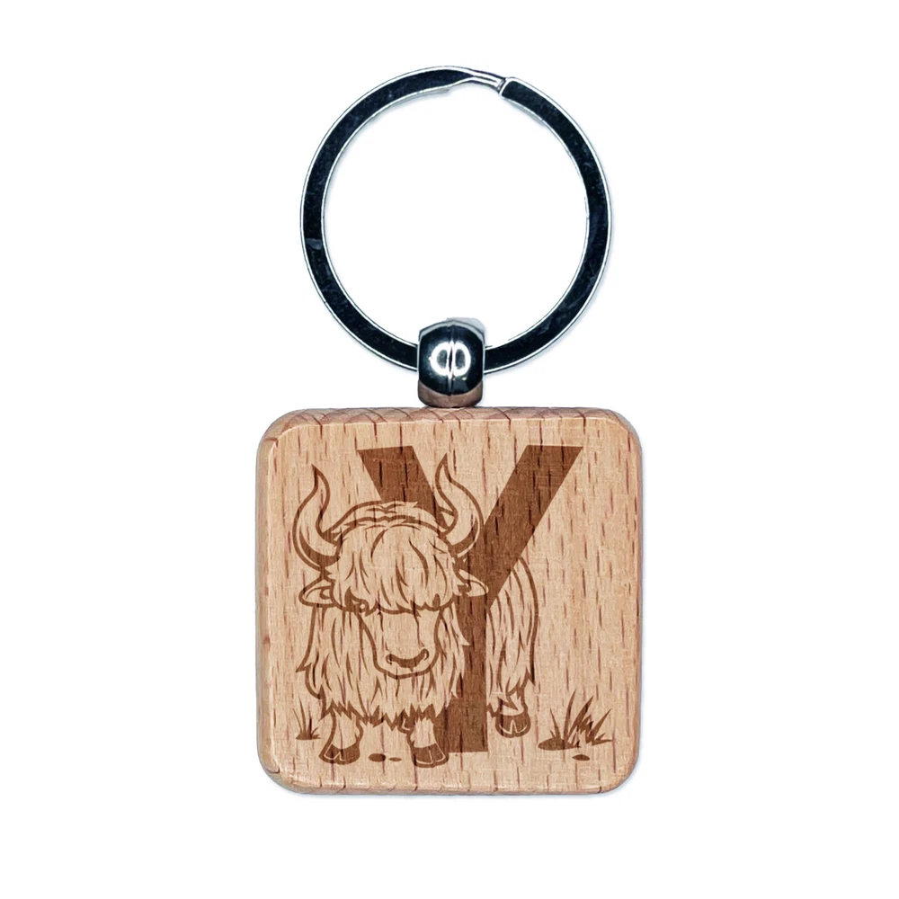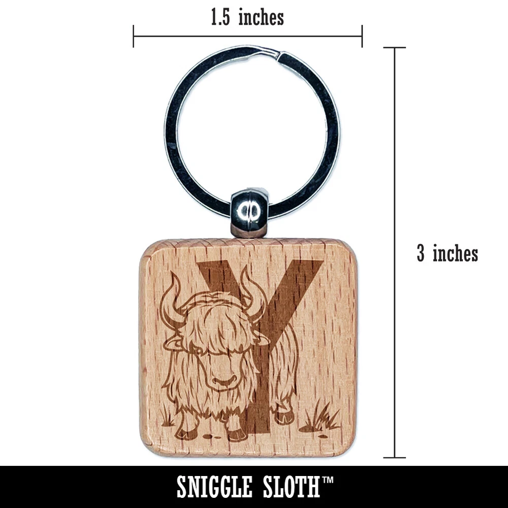 Animal Alphabet Letter Y for Yak Engraved Wood Square Keychain Tag Charm