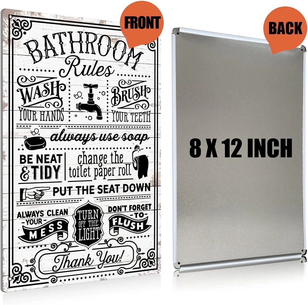 Product Description Features - Color: As the pictures shown. - Material: Metal tin. - Size: 12" x 8" / 30 x 20 cm. - Four small pre-drilled holes in each corner of this sign, can be mounted on the wall by nails on 4 corners or double-sided tape, or can be put in table, or hang on the wall. - Vintage metal tin signs are always a hit for gift giving and home decorating, this charming collectible is perfect for your restaurant, home, bar,pub,office,shop or garage. - Our tin sign vintage decorative painting is manufactured with folded edges for safety and stability. - Metal tin sign safe and stabili, the graphics printed with uv resistant inks and wordings will withstand the elements and will not fade, no matter the sun, rain, or other extreme weather.