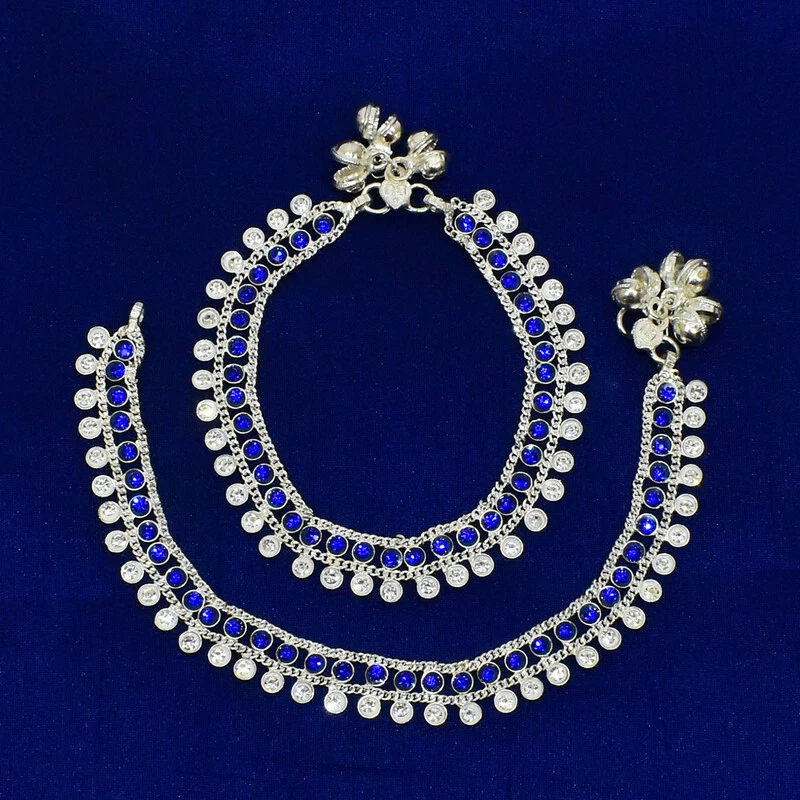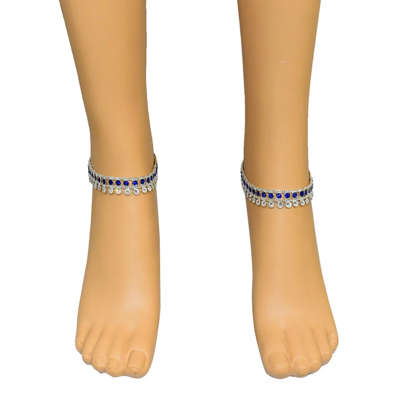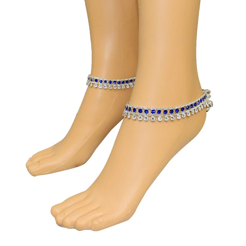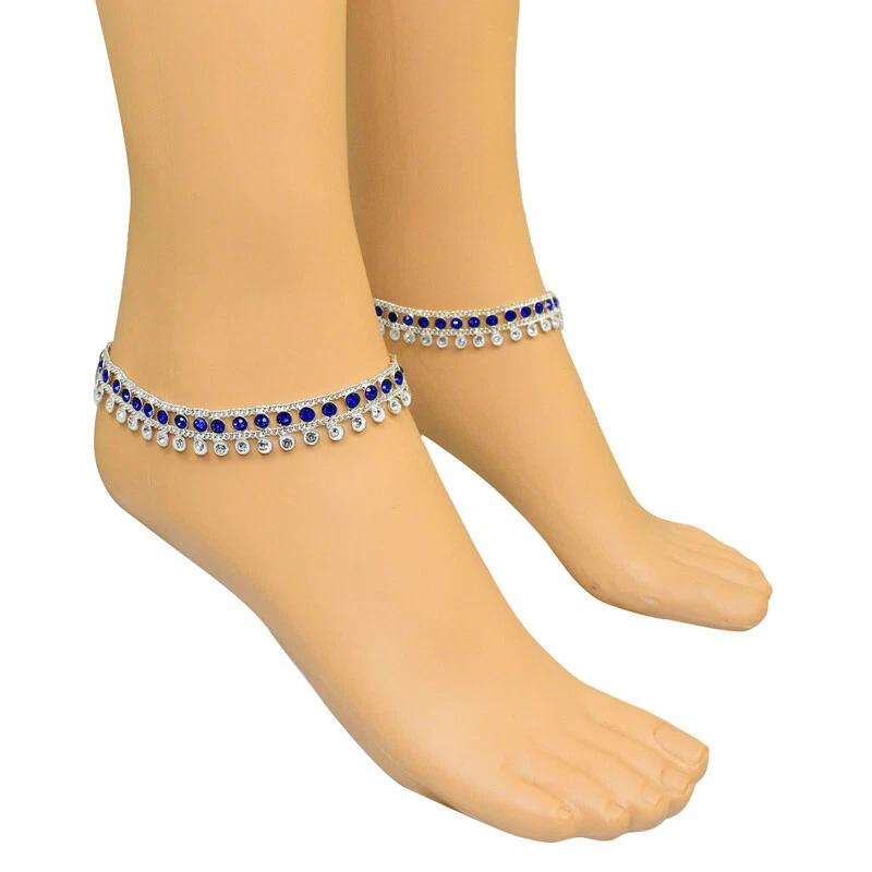 Item Description Anklets Barefoot Ethnic Gypsy Antique Payal Feet Ankle Bracelet Fashion Jewelry Sale For:- 1 Pair Size:- Length:-25cm x Width:-1.5cm (Approx) Material:- Metal Color:- Royal Blue & Silver Main Stone Color:- Royal Blue Closure:- Hook Item Weight:- 39 gm Main Stone:- Artificial Stones & Bell About This Item New Traditional Stylish Anklet For Women And Girls. Alloy And Crystal Diamond.The Diamonds Are Neatly And Firmly Set On The Anklet. Sparkle Incredibly In The Sun. Perfect Traditional Anklet Contemporary Look,Ideal For Any Ethnic Outfits Like Saree,Lehenga,Gowns,Bridal Wear,Party, Festival,Any Special Occasion, Dance Or As Fashion Novelty Costume Accessories. Style Tip:- Perfect For Spring And Summer Wear.Compliments Most Outfits.Casual Chic Everyday Wear. Ideal For:- Christmas,Thanks Giving,New Year,Valentine,Birthday,Anniversary Or Any Occasion,Gift For Someone You Love Jewellery Care:- Will Last A Long time And More Will Never Rust - Non Tarnish - If Used In Water Dry Completely Before Storing For Hygiene Note:-Buyers Will Be Responsible For Pay Their Country'S Custom Duties Charge, Import Charges And Other Charges (If Applicable).