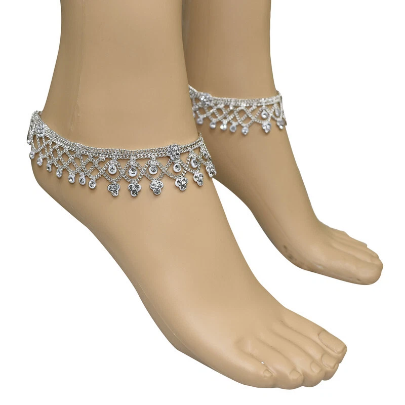 Item Description Women's Anklets Payal Indian Ankle Bracelets Chain Pair Foot Jewellery Sale For:- 1 Pair Size:- Length:-26cm x Width:-2.5cm (Approx) Material:- Metal Color:- Silver Closure:- Hook Type:- Anklets Main Stone:- Artificial Stones & Beads About This Item New Traditional Style Anklet For Women And Girls. Ethnic Significance:- Brides Wear It To Draw Attention To And Decorate Their Feet Bells Or Chimes Make A Soft Sound When The Bride Walks Traditionally Payals Are Worn In Both Feet. Style Tip:- Perfect For Spring And Summer Wear.Compliments Most Outfits.Casual Chic Everyday Wear. Perfect Traditional Anklet Contemporary Look,Ideal For Any Ethnic Outfits Like Saree,Lehenga,Gowns,Bridal Wear,Party, Festival,Any Special Occasion, Dance Or As Fashion Novelty Costume Accessories. Ideal For:- Christmas,Thanks Giving,New Year,Valentine,Birthday,Anniversary Or Any Occasion,Gift For Someone You Love Jewellery Care:- Can Be Used In Water But Dry Completely Before Storing. Note:-Buyers Will Be Responsible For Pay Their Country'S Custom Duties Charge, Import Charges And Other Charges (If Applicable) .