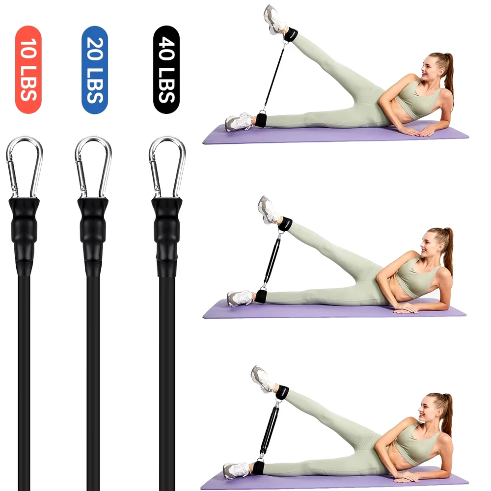 【3 Different Levels】 - 3 exercise bands, provide you with 3 level of resistance bands, 10/20/30 lb let you match. Adjustable design System can adapt to different people to exercise, training for 15 minutes every day, Get a bikini booty and ripped abs and be the envy of your friends at your next pool party. 【MULTIFUNCTION WORKOUT SYSTEM】 - Versatile exercise trainer designed for legs and buttocks, all in one design, can be used as Hip resistance bands, Ankle resistance training, Leg exercise band, Jump Trainer, Speed Training and so on. bring you health and beauty, great gift for friends and family. 【PERFECT DESIGN】 -Ankle Strap has a 100% high quality sponge, making it the most comfortable and Safety ankle cuff on the market. Neoprene ankle pad give you comfortable touch throughout full workout.Double D-ring secure band very well, More peace of mind for your legs and glutes training. 【GET NEXT LEVEL WORKOUT】 - By bring your workout to the next level with new Ankle resistance bands exercises, let you not only have sexy buttocks, and also get the strong strength legs. If you are a person who likes fitness, body sculpting, or a running, football, basketball, rugby player, we believe you will like it very much the ankle resistance bands with cuffs. 【PERSONAL HOME GYM】 - This ankle resistance band set includes 3pieces Tube bands, 1pair ankle Straps and mesh carrying case to allow you to perform the widest variety of resistance training exercises possible at home.You can also take your bands to Gym, Office, and even workout on vacation!