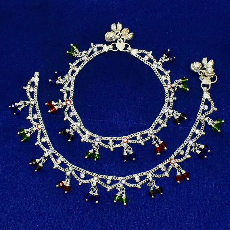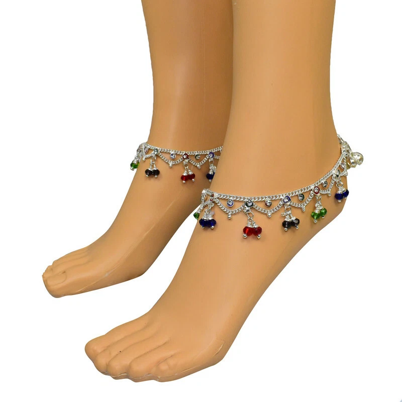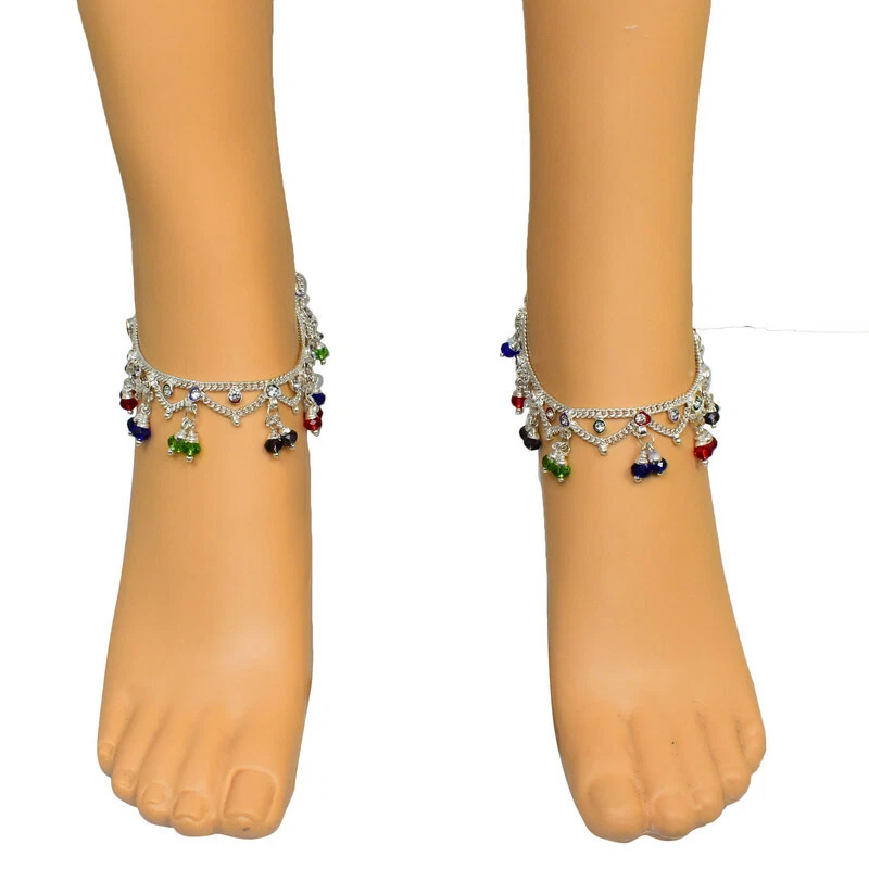 Item Description Anklets Barefoot Ethnic Gypsy Antique Payal Feet Ankle Bracelet Fashion Jewelry Sale For:- 1 Pair Size:- Length:-26cm x Width:-2.5cm (Approx) Material:- Metal Color:- Multicolor & Silver Main Stone Color:- Multicolor Closure:- Hook Item Weight:- 56 gm Main Stone:- Artificial Stones & Beads,Bell About This Item New Traditional Stylish Anklet For Women And Girls. Alloy And Crystal Diamond.The Diamonds Are Neatly And Firmly Set On The Anklet. Sparkle Incredibly In The Sun. Perfect Traditional Anklet Contemporary Look,Ideal For Any Ethnic Outfits Like Saree,Lehenga,Gowns,Bridal Wear,Party, Festival,Any Special Occasion, Dance Or As Fashion Novelty Costume Accessories. Style Tip:- Perfect For Spring And Summer Wear.Compliments Most Outfits.Casual Chic Everyday Wear. Ideal For:- Christmas,Thanks Giving,New Year,Valentine,Birthday,Anniversary Or Any Occasion,Gift For Someone You Love Jewellery Care:- Will Last A Long time And More Will Never Rust - Non Tarnish - If Used In Water Dry Completely Before Storing For Hygiene Note:-Buyers Will Be Responsible For Pay Their Country'S Custom Duties Charge, Import Charges And Other Charges (If Applicable).