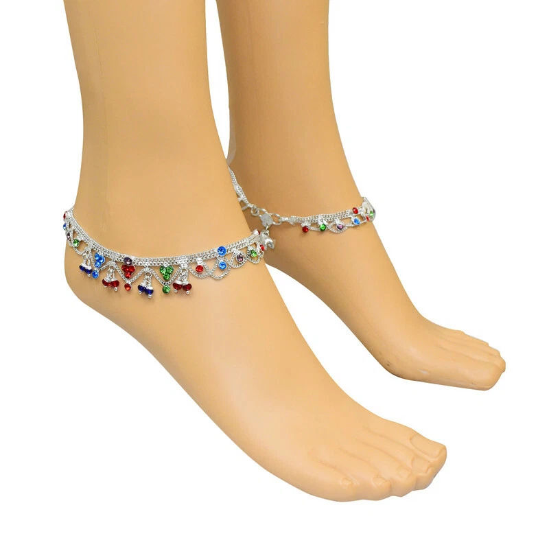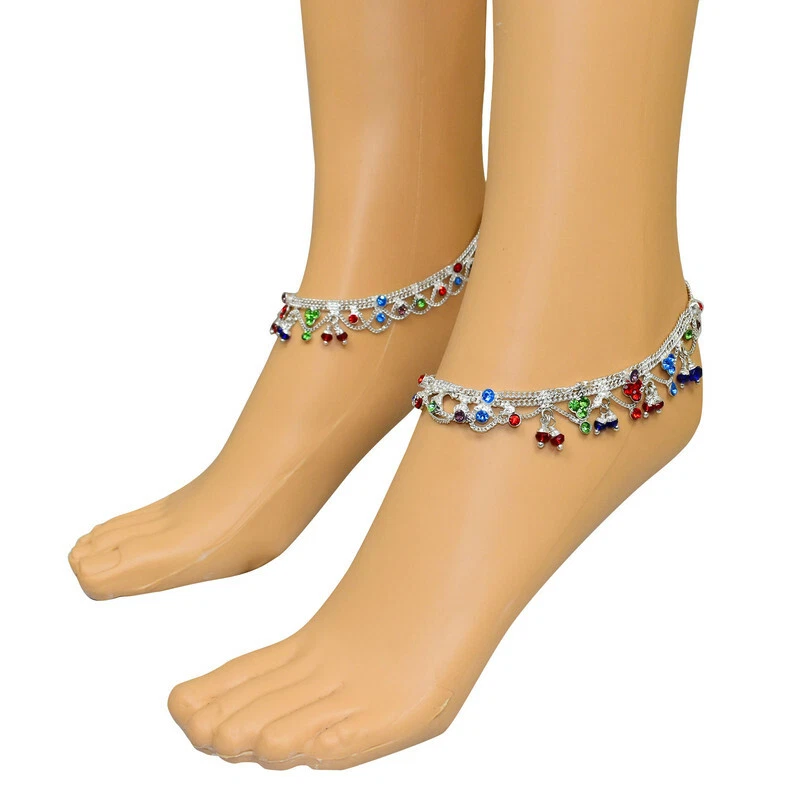Item Description Anklets Barefoot Ethnic Gypsy Antique Payal Feet Ankle Bracelet Fashion Jewelry Sale For:- 1 Pair Size:- Length:-26cm x Width:-2cm (Approx) Material:- Metal Color:- Multicolor & Silver Main Stone Color:- Multicolor Closure:- Hook Item Weight:- 36 gm Main Stone:- Artificial Stones & Beads,Bell About This Item New Traditional Stylish Anklet For Women And Girls. Alloy And Crystal Diamond.The Diamonds Are Neatly And Firmly Set On The Anklet. Sparkle Incredibly In The Sun. Perfect Traditional Anklet Contemporary Look,Ideal For Any Ethnic Outfits Like Saree,Lehenga,Gowns,Bridal Wear,Party, Festival,Any Special Occasion, Dance Or As Fashion Novelty Costume Accessories. Style Tip:- Perfect For Spring And Summer Wear.Compliments Most Outfits.Casual Chic Everyday Wear. Ideal For:- Christmas,Thanks Giving,New Year,Valentine,Birthday,Anniversary Or Any Occasion,Gift For Someone You Love Jewellery Care:- Will Last A Long time And More Will Never Rust - Non Tarnish - If Used In Water Dry Completely Before Storing For Hygiene Note:-Buyers Will Be Responsible For Pay Their Country'S Custom Duties Charge, Import Charges And Other Charges (If Applicable).