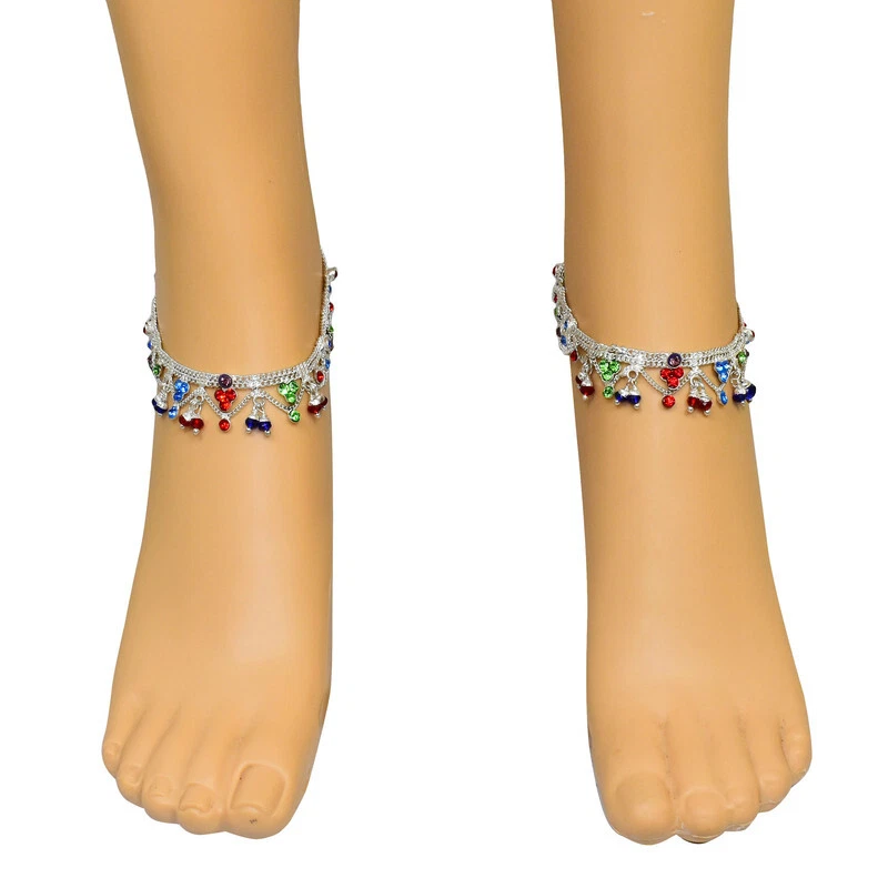 Item Description Anklets Barefoot Ethnic Gypsy Antique Payal Feet Ankle Bracelet Fashion Jewelry Sale For:- 1 Pair Size:- Length:-26cm x Width:-2cm (Approx) Material:- Metal Color:- Multicolor & Silver Main Stone Color:- Multicolor Closure:- Hook Item Weight:- 36 gm Main Stone:- Artificial Stones & Beads,Bell About This Item New Traditional Stylish Anklet For Women And Girls. Alloy And Crystal Diamond.The Diamonds Are Neatly And Firmly Set On The Anklet. Sparkle Incredibly In The Sun. Perfect Traditional Anklet Contemporary Look,Ideal For Any Ethnic Outfits Like Saree,Lehenga,Gowns,Bridal Wear,Party, Festival,Any Special Occasion, Dance Or As Fashion Novelty Costume Accessories. Style Tip:- Perfect For Spring And Summer Wear.Compliments Most Outfits.Casual Chic Everyday Wear. Ideal For:- Christmas,Thanks Giving,New Year,Valentine,Birthday,Anniversary Or Any Occasion,Gift For Someone You Love Jewellery Care:- Will Last A Long time And More Will Never Rust - Non Tarnish - If Used In Water Dry Completely Before Storing For Hygiene Note:-Buyers Will Be Responsible For Pay Their Country'S Custom Duties Charge, Import Charges And Other Charges (If Applicable).