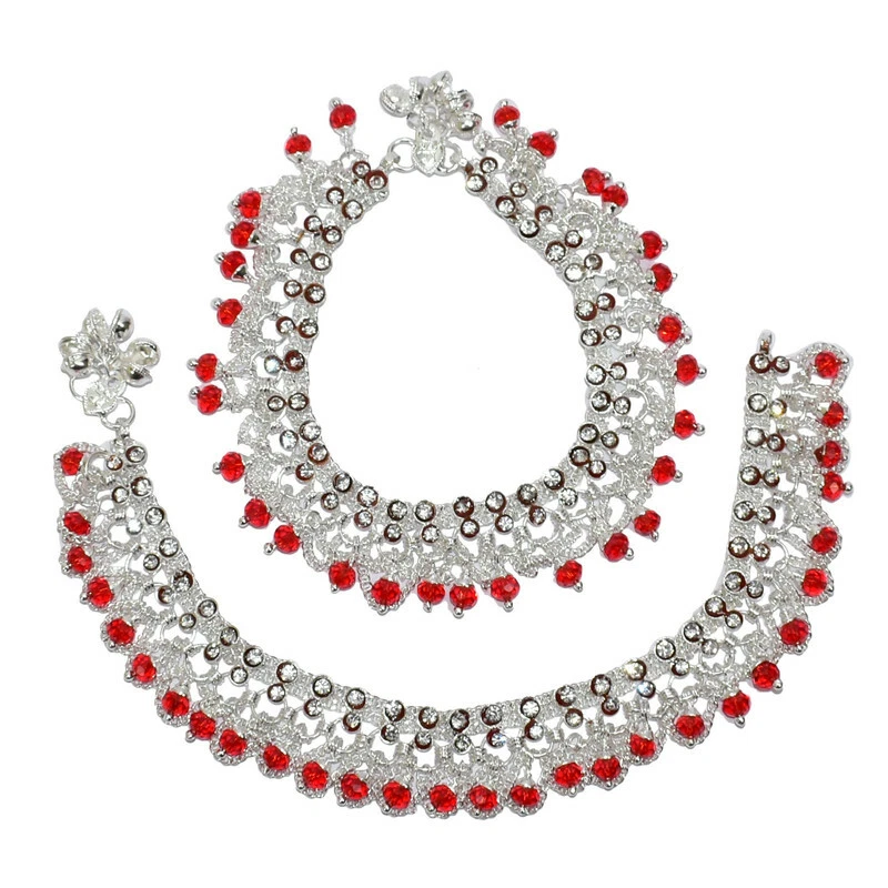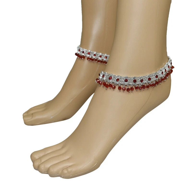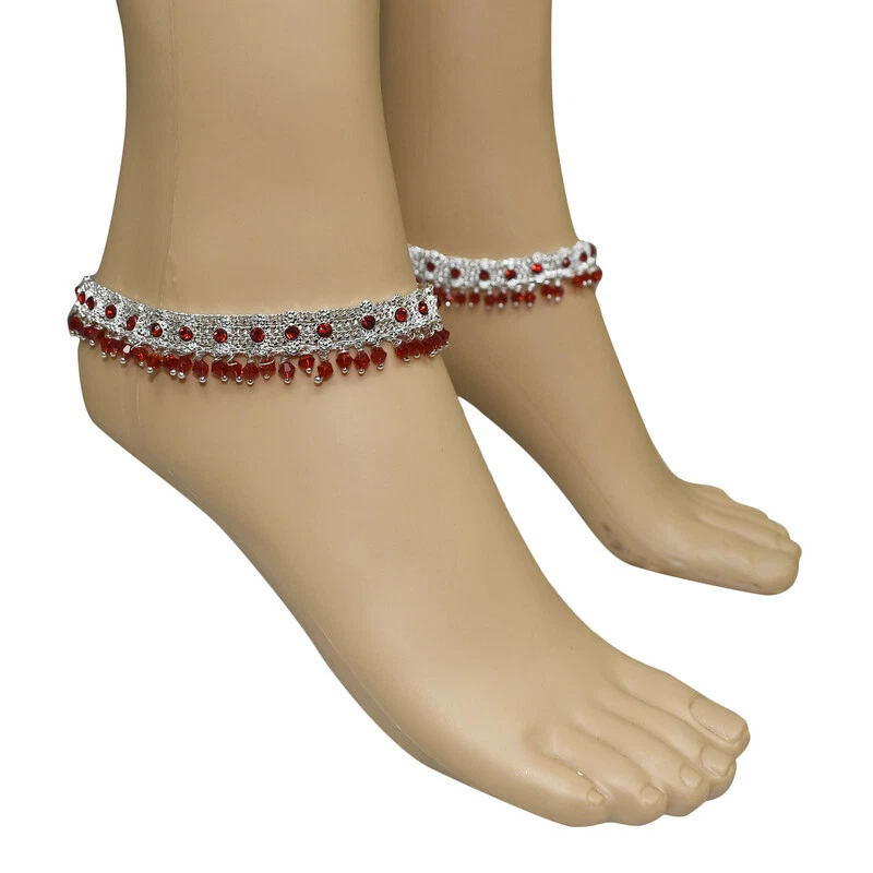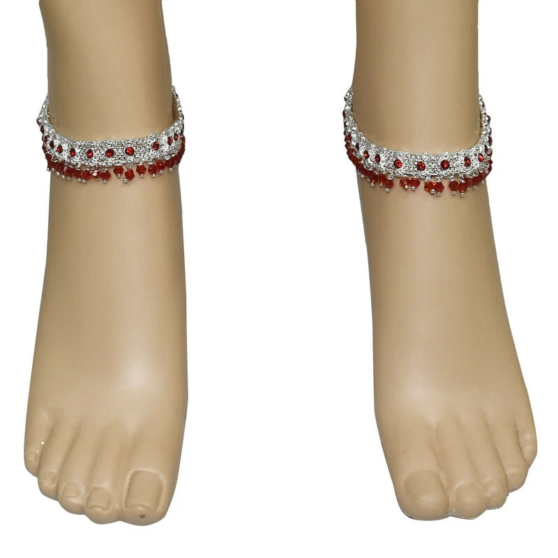 Item Description Women's Anklets Payal Indian Ankle Bracelets Chain Pair Foot Jewellery Sale For:- 1 Pair Size:- Length:-25.5cm x Width:-1.5cm (Approx) Material:- Metal Color:- Silver & Red Closure:- Hook Type:- Anklets Main Stone:- Artificial Stones & Beads About This Item New Traditional Style Anklet For Women And Girls. Ethnic Significance:- Brides Wear It To Draw Attention To And Decorate Their Feet Bells Or Chimes Make A Soft Sound When The Bride Walks Traditionally Payals Are Worn In Both Feet. Style Tip:- Perfect For Spring And Summer Wear.Compliments Most Outfits.Casual Chic Everyday Wear. Perfect Traditional Anklet Contemporary Look,Ideal For Any Ethnic Outfits Like Saree,Lehenga,Gowns,Bridal Wear,Party, Festival,Any Special Occasion, Dance Or As Fashion Novelty Costume Accessories. Ideal For:- Christmas,Thanks Giving,New Year,Valentine,Birthday,Anniversary Or Any Occasion,Gift For Someone You Love Jewellery Care:- Can Be Used In Water But Dry Completely Before Storing. Note:-Buyers Will Be Responsible For Pay Their Country'S Custom Duties Charge, Import Charges And Other Charges (If Applicable) .