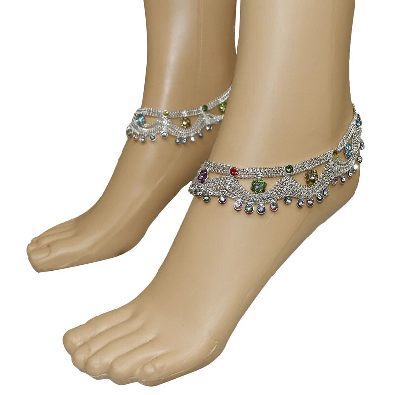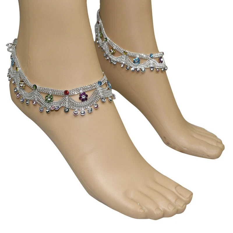 Item Description Women's Anklets Payal Indian Ankle Bracelets Chain Pair Foot Jewellery Sale For:- 1 Pair Size:- Length:-26.5cm x Width:-2.5cm (Approx) Material:- Metal Color:- Multicolor Closure:- Hook Type:- Anklets Main Stone:- Artificial Stones & Beads About This Item New Traditional Style Anklet For Women And Girls. Ethnic Significance:- Brides Wear It To Draw Attention To And Decorate Their Feet Bells Or Chimes Make A Soft Sound When The Bride Walks Traditionally Payals Are Worn In Both Feet. Style Tip:- Perfect For Spring And Summer Wear.Compliments Most Outfits.Casual Chic Everyday Wear. Perfect Traditional Anklet Contemporary Look,Ideal For Any Ethnic Outfits Like Saree,Lehenga,Gowns,Bridal Wear,Party, Festival,Any Special Occasion, Dance Or As Fashion Novelty Costume Accessories. Ideal For:- Christmas,Thanks Giving,New Year,Valentine,Birthday,Anniversary Or Any Occasion,Gift For Someone You Love Jewellery Care:- Can Be Used In Water But Dry Completely Before Storing. Note:-Buyers Will Be Responsible For Pay Their Country'S Custom Duties Charge, Import Charges And Other Charges (If Applicable) .