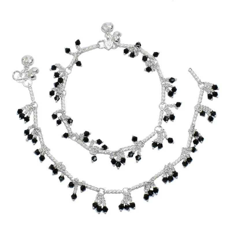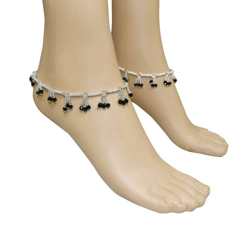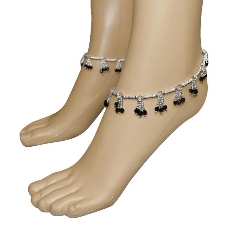 Item Description Women's Anklets Payal Indian Ankle Bracelets Chain Pair Foot Jewellery Sale For:- 1 Pair Size:- Length:-26.5cm x Width:-1.5cm (Approx) Material:- Metal Color:- Silver & Black Closure:- Hook Type:- Anklets Main Stone:- Artificial Stones & Beads About This Item New Traditional Style Anklet For Women And Girls. Ethnic Significance:- Brides Wear It To Draw Attention To And Decorate Their Feet Bells Or Chimes Make A Soft Sound When The Bride Walks Traditionally Payals Are Worn In Both Feet. Style Tip:- Perfect For Spring And Summer Wear.Compliments Most Outfits.Casual Chic Everyday Wear. Perfect Traditional Anklet Contemporary Look,Ideal For Any Ethnic Outfits Like Saree,Lehenga,Gowns,Bridal Wear,Party, Festival,Any Special Occasion, Dance Or As Fashion Novelty Costume Accessories. Ideal For:- Christmas,Thanks Giving,New Year,Valentine,Birthday,Anniversary Or Any Occasion,Gift For Someone You Love Jewellery Care:- Can Be Used In Water But Dry Completely Before Storing. Note:-Buyers Will Be Responsible For Pay Their Country'S Custom Duties Charge, Import Charges And Other Charges (If Applicable) .